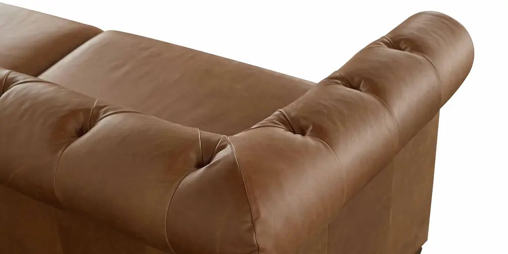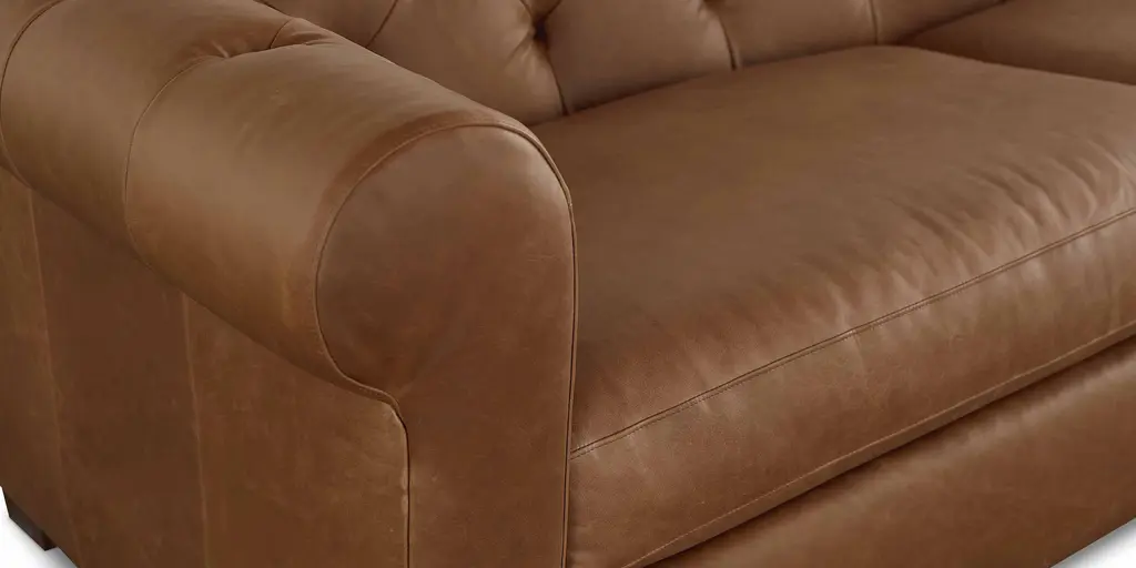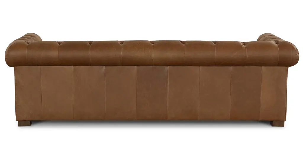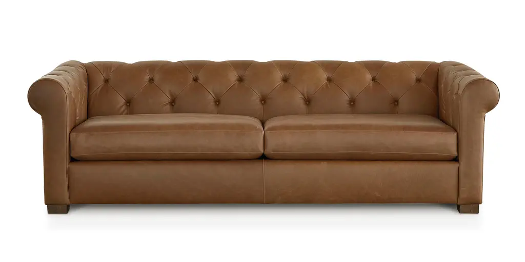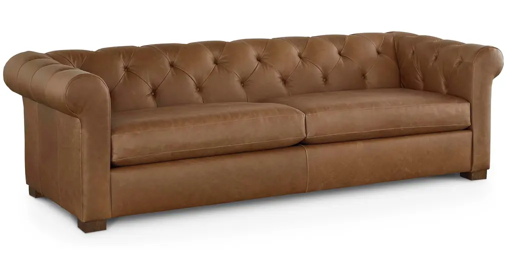 The BenchMade Jamestown leather sofa reminds you that the classics are always in style. Hand sewn and tufted in North Carolina, the elegant leather Chesterfield silohouette is grand in scale and deep in comfort. Long seats and high arms fit into majestic rooms, with crackling fireplaces and cozy rugs and the seats are untufted for soft comfort and an updated feel. The Jamestown sofa is available in top grain genuine leathers, in designer-chosen dimensional colors - and made to caress. The Jamestown is also available in store in a wide variety of fabric colors and wood leg finishes. Also available are the Jamestown Loveseat, Chair and Ottoman.
