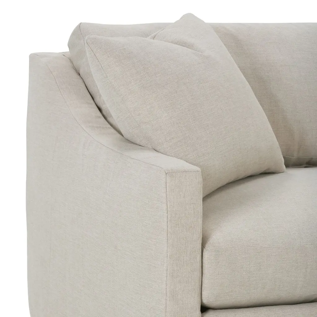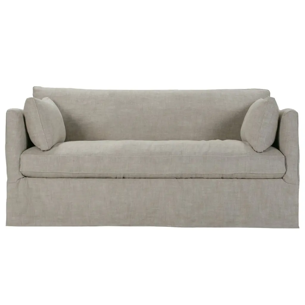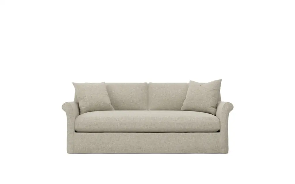 Modern, practical, and sure to be the focal point of your living room, the Jaxon Slipcover Sofa will easily be the center of any living space without sacrificing great design. The linen-like feel of the material adds a touch of elegance and comfort, making it a perfect addition to your home. Includes two 22" pillows (non-welted) for added style and support.