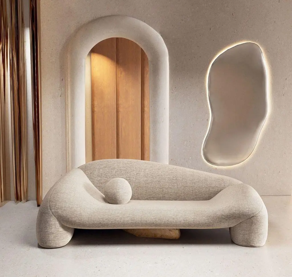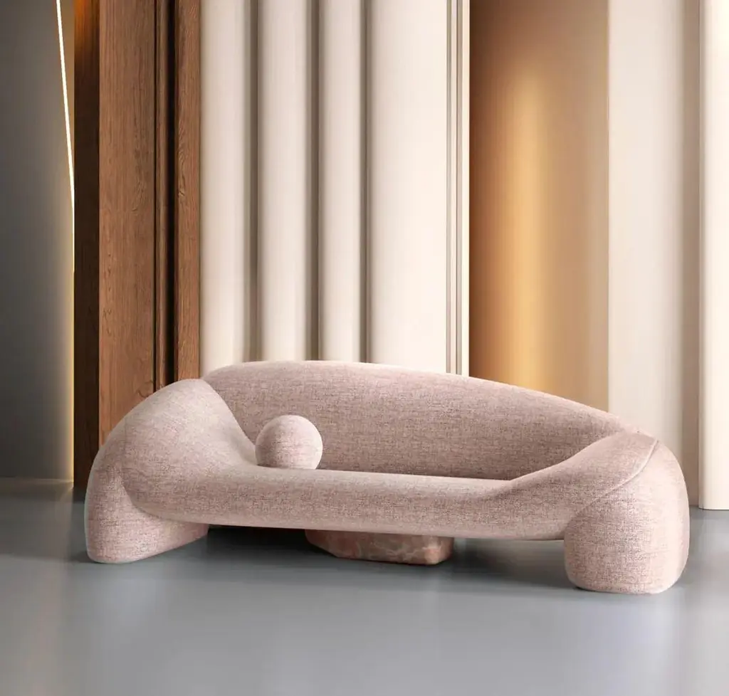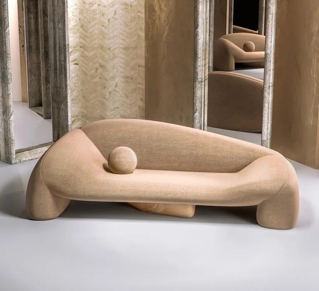 Jell Sofa by Alter Ego StudioDimensions: D 120 x W 260 x H 85 cm. Materials: Wooden frame, high resistance foam, upholstery fabric B108 by SAHCO (100% mohair), stone piece.Available in other fabrics and stones.We are a design studio specializing in furniture design founded by an award-winning designer Natalia Komarova.In the design process, we create both functional and beautiful products.The team possesses unique individuality and strong qualifications and can translate stylish and authentic vision into a furniture design.