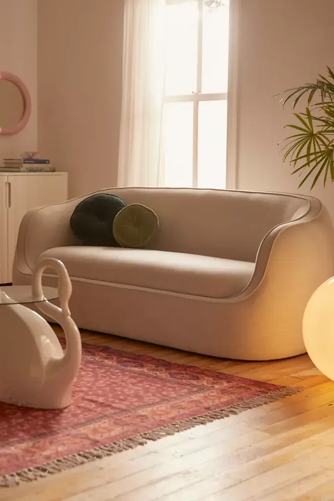 Inviting upholstered sofa that captures an approachable, modern look with curving lines all over. Finished with a plush, integrated seat cushion and backrest. This custom piece of furniture will be made to order just for you. Available exclusively at Urban Outfitters.