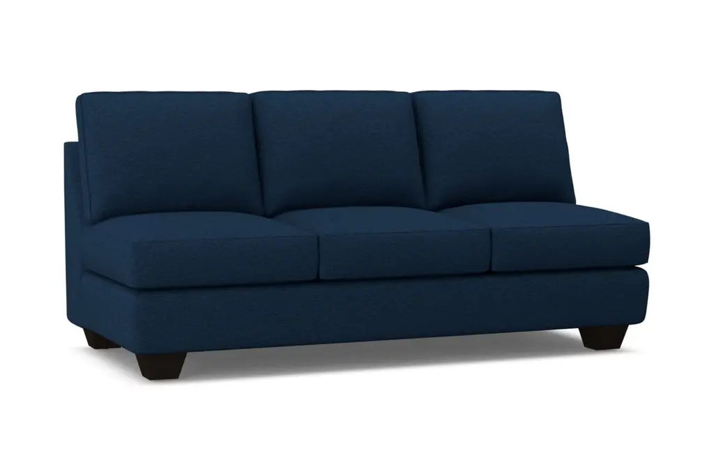 Our Jenna sofa blends simple, modern styling with defined lines for a tailored look. This comfy piece features a classic, clean silhouette and tapered legs in a dark walnut finish. Two plush, feather-filled toss pillows complete the look with cozy comfort.