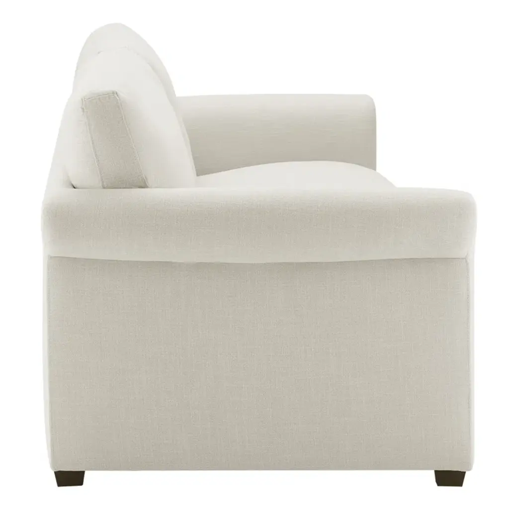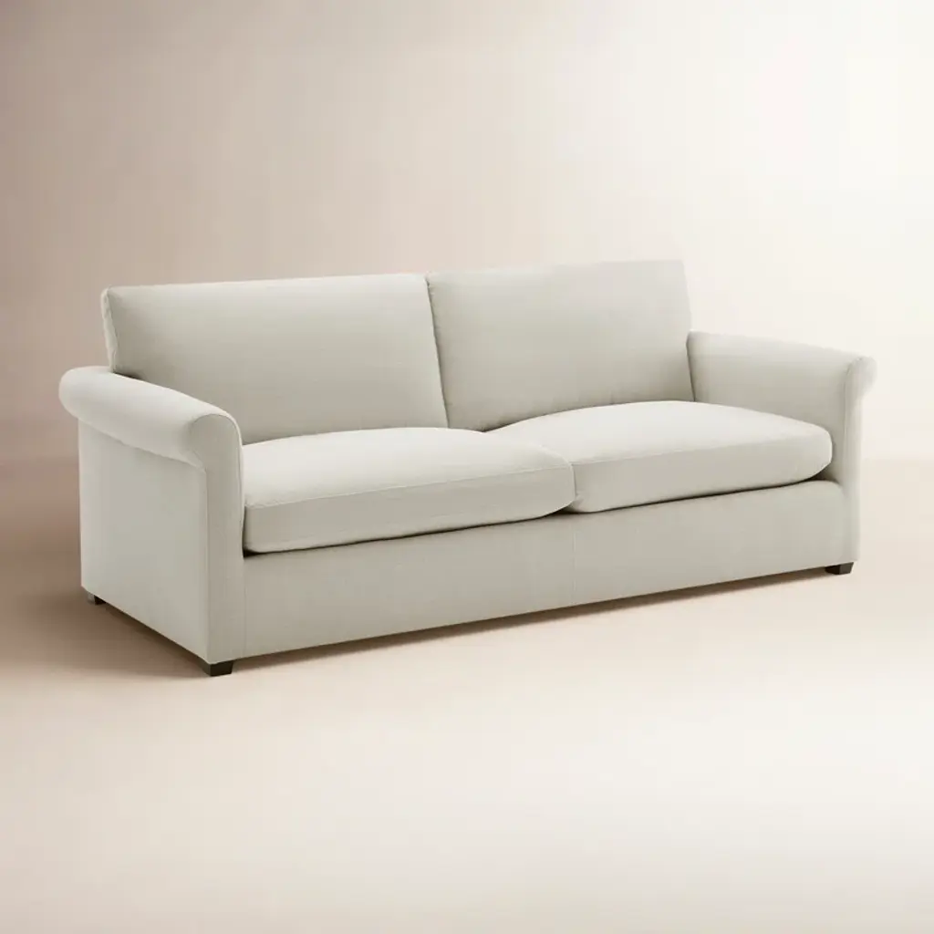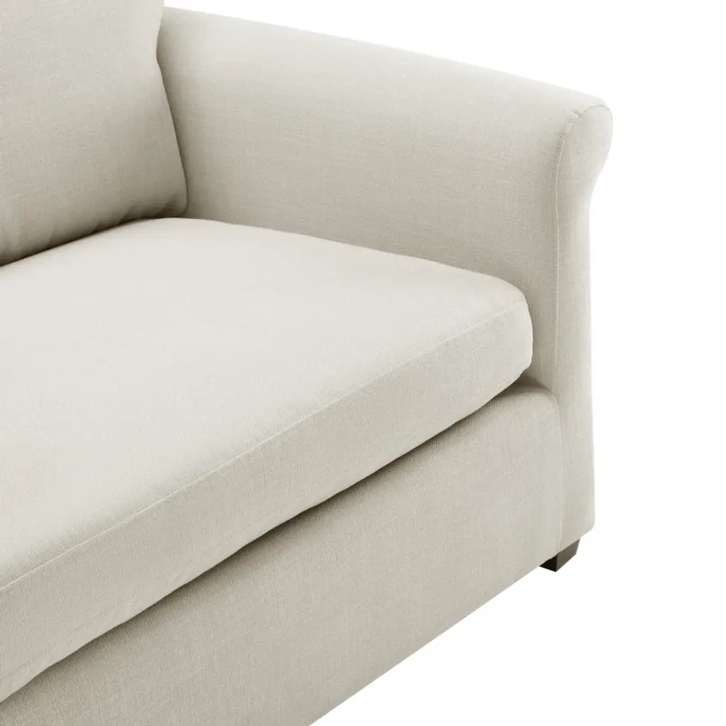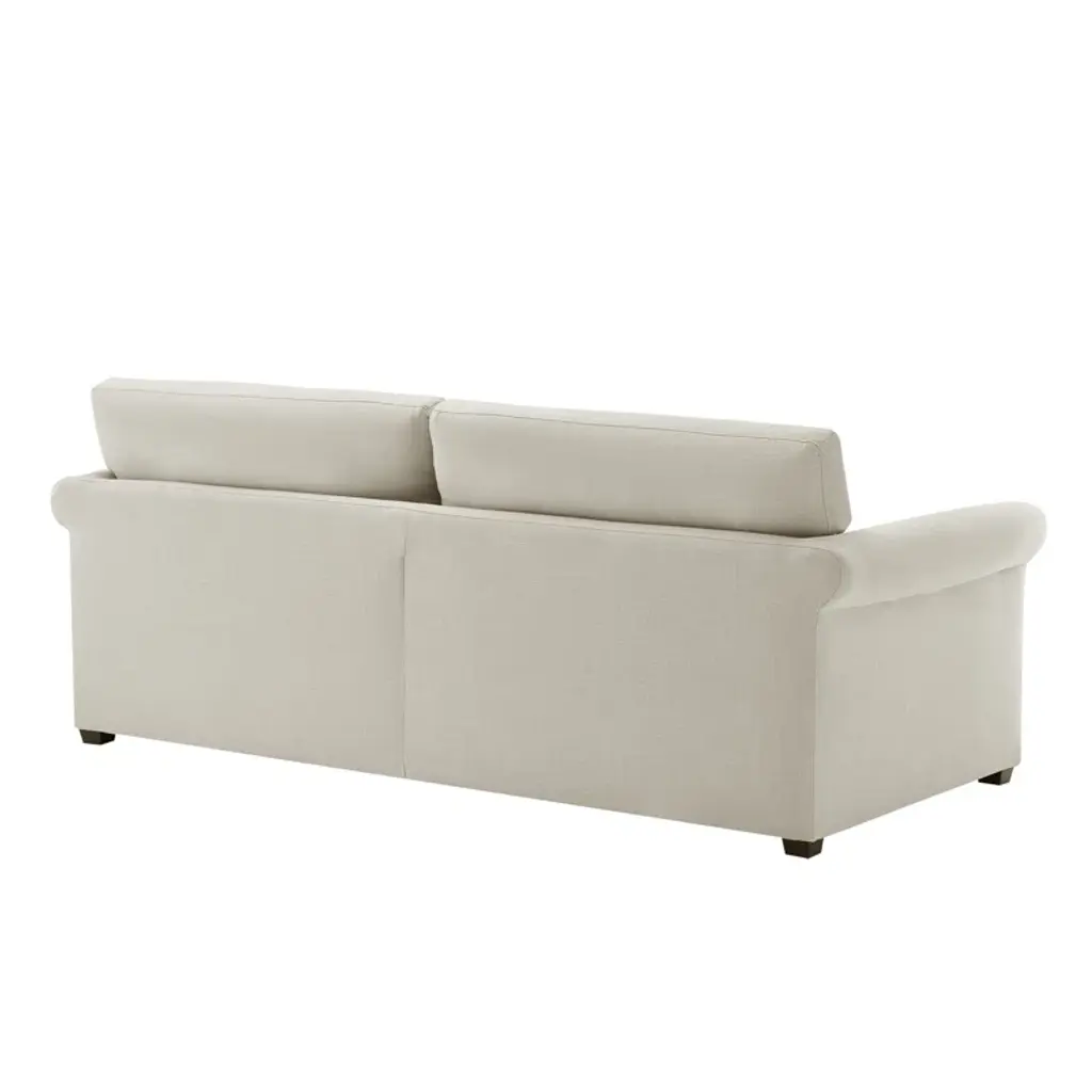 Elevate your living space with this cozy upholstered sofa, showcasing rolled arms for a touch of classic elegance. The three-seat design is perfect for family gatherings or just curling up with a good book. It features a solid and engineered wood frame, covered in a soft polyester blend fabric that comes in the color of your choice. Foam-filled seat cushions and a blend of foam, synthetic fiber, and feather back fill ensure ultimate comfort. Plus, the removable and reversible cushions make maintenance a breeze. Just sit back, relax, and enjoy your new favorite spot.