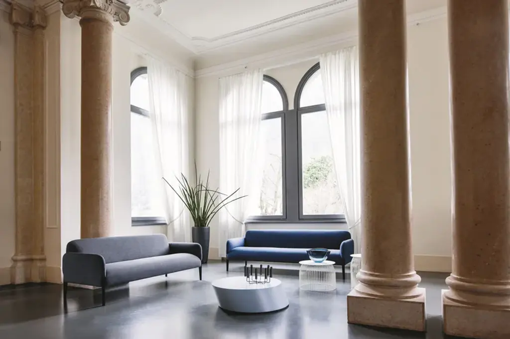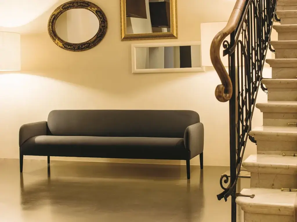 Join by La Cividina is a 3 seater leisure sofa with fire retardant padding.Dimensions: H: 29 1 ⁄ 2” L: 86 5 ⁄ 8” D: 32 1 ⁄ 4” H: seat 16 1 ⁄ 2” H: armrest 23 5 ⁄ 8”.A complete and versatile family of upholstery, from sofas to armchairs, and benches to poufs, featuring distinctive, elegantly soft shapes, with slender armrests into which the wooden feet are set like jewels, in a natural ash, wengé or graphite finish, or in die-cast aluminium.The wooden frame is padded with non-deformable variable-density polyurethane foam, and finished in polyester fibre. There is a selection of different coverings in fabric or high-quality leather.