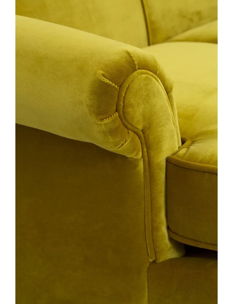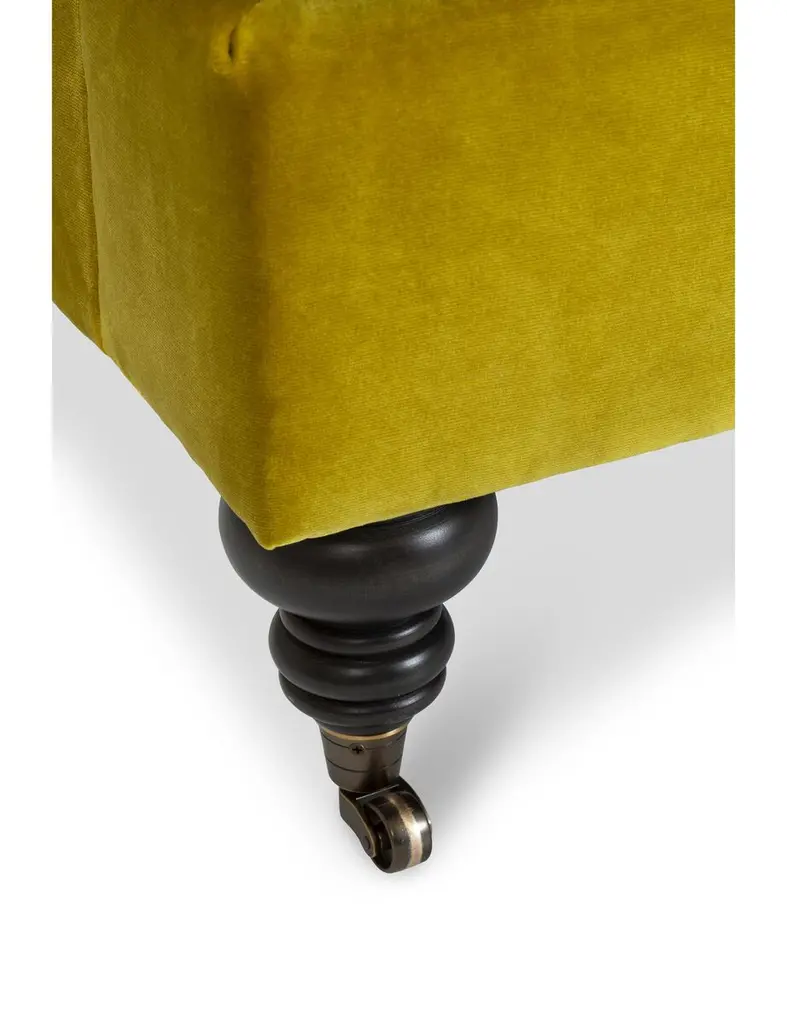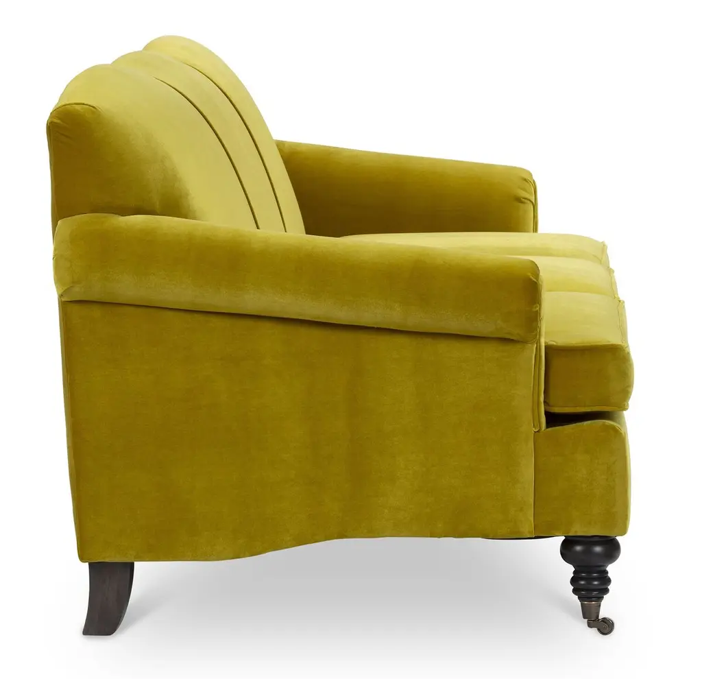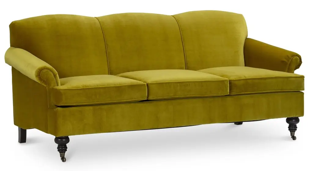 Available online exclusively at One Kings Lane: Grand styling and comfort come together in this roll-arm sofa. The piece is sumptuously upholstered in lapis-blue velvet with casters on the turned front legs to allow for easy mobility while protecting your floors. The seat fill of high-resiliency foam surrounded by feathers and down ensures long-lasting comfort. Handcrafted in Southern California.
