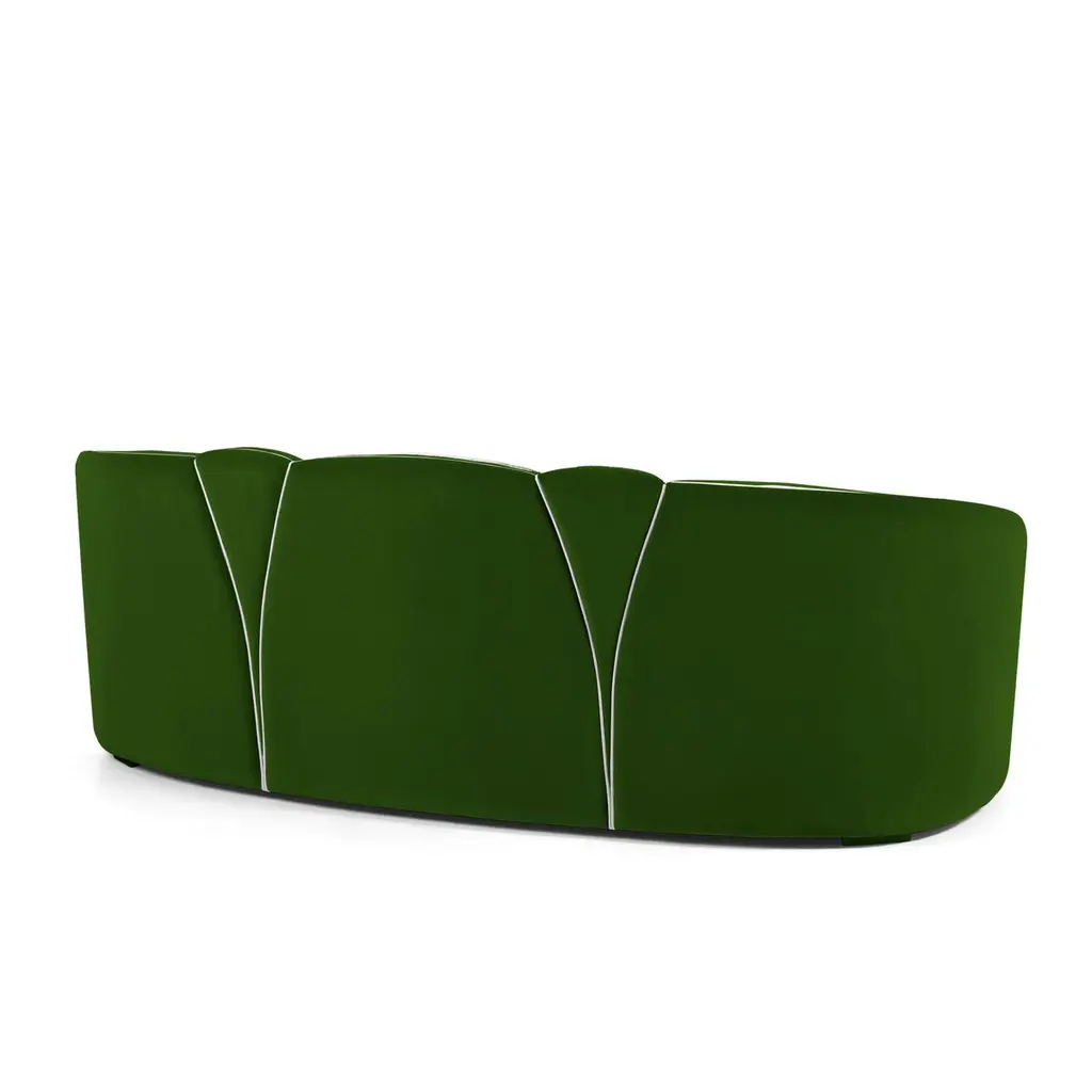 Josephine 280 Sofa by MunnaDimensions: D 103 x W 280 x H 83 cm. SH: 42 cm.Materials: Wood, foam, and upholstery.Finish: Cotton Velvet, ref. Emerald, CV09 upholstery and wild silk, ref. Silver, WS07 piping. Available in all Munna fabrics except Wild Silk. Available in client’s own material. The piping is available in all Munna fabrics and client’s own material. Handmade in Porto. Please contact us.Established in Porto in 2008, Munna is a furniture design brand renowned for creating handmade upholstery with unmatched craftsmanship, seamlessly blending noble materials and timeless design, for both commercial and residential projects.Made by hand in Porto, Munna’s pieces honor the profound heritage of craftsmanship, while drawing inspiration from history’s most influential artistic periods. Munna’s pieces are made of the finest fabrics such as cotton velvet, twill, leather, and silk; the finest wood veneers, such as ebony, walnut, and rosewood; sumptuous gold, silver, and copper leaves, metal details in brass, nickel, and copper, and superior lacquers.