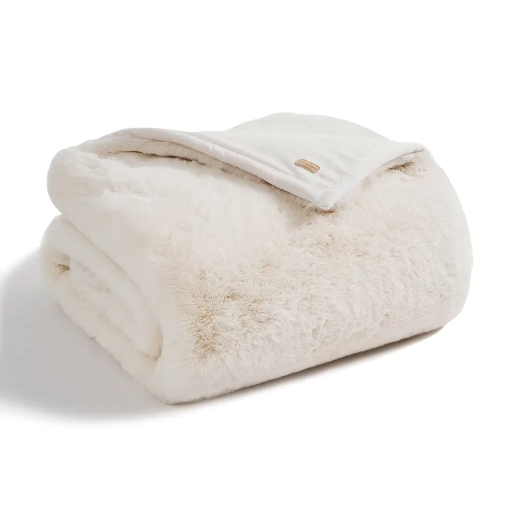 Jujabu 90"x90" Ultra Soft Faux Fur Blanket Blanket, For Bed Or Sofa - Beige