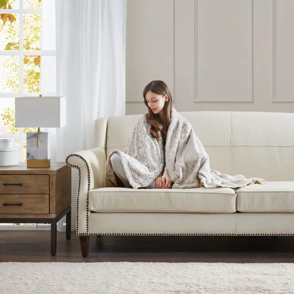 Experience ultimate comfort with this luxuriously soft reversible faux fur-mink blanket, featuring a plush faux fur face and a smooth solid reverse side. Measuring 90" x 90", it provides ample coverage for beds or cozy lounging. The blanket is machine washable on a gentle cycle with cold water, and tumble drying on low or no heat is recommended. Initial shedding is normal but reduces significantly after a few washes. Oeko-Tex certification guarantees the blanket is free from harmful substances and chemicals, ensuring safety for your family. Perfect for adding warmth and style to any room, this versatile blanket is both durable and easy to care for.