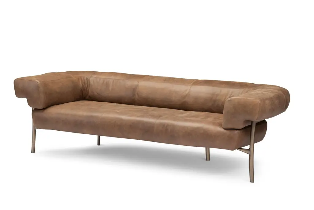 In the Katana sofa, Paolo Rizzatto, being the refined and expert designer he is, puts great care in the proportions of the structural elements of the product. In the elliptical leg, every millimeter has been designed and calibrated, as well as the relationship between seating and structure.Fittings and lines, grafts and joints, everything is designed for the best harmony. The dialogue between the parties, as in architecture, is for the Milanese architect a perfect orchestration.The sofa refers to the iconic and seductive shapes of the classic Chesterfield, reinterpreted with renewed elegance, and thanks to the gentle curvature of the leg it resolves the connection with the seat and the back. This makes it enveloping and comfortable, its height and width support a relaxed sociability.The ability and experience of Rizzatto in designing elegant, ironic and precious objects is perfectly summarized by the Katana sofa, which dialogs happily with the other collections of GHIDINI1961, creating endless relationships.Equilibrium and rigor are the two adjectives that best describe the sofa complete with armchair with generous measures.Structure: Belted seat and multilayered, covered in polyurethane foam at different densities covered with quilted goose down in cotton lining. Backrest structure made of plywood covered with polyurethane rubber of different densities, all covered with a quilted goose down in cotton lining. Covers: The sofa covers are not removable. Base: The sofa and armchair is based on the Katana leg. The Katana leg is made of Italian brass, die casted in-house at Ghidini1961. Polished manually, and lacquered with transparent finish to guarantee a longlasting durability.Additional Information:Materials: Brass, leatherUpholstery: Choclate Forest LeatherLegs Finish: Brown Burnished BrassDimensions: W 180 x D 90 x H 68 cmAvailable in other upholstery options: Nappa leather, nabuk leather, velvet, fabric Available in other finish option: Polished brass, satin brass, light burnished brass, dark burnished brass, black goldAvailable in 3-seater and 4-seater sofa version