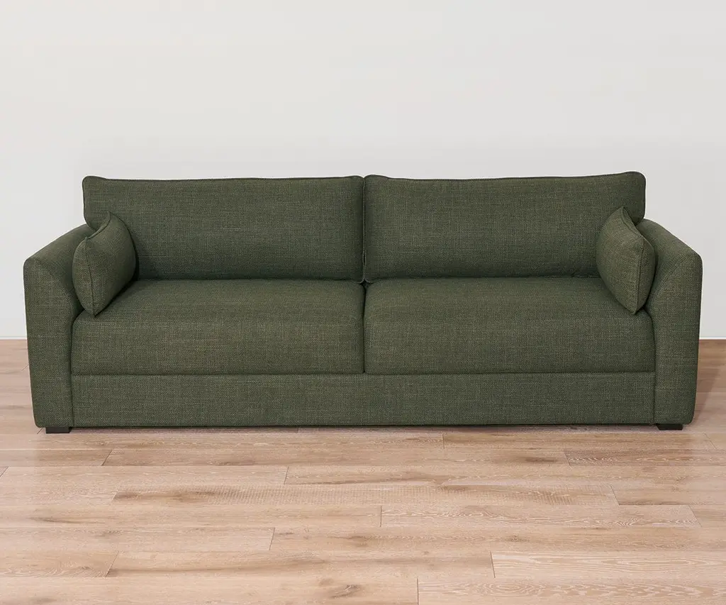 A minimalist silhouette and retro-inspired hue give the Katrina Sofa a sleek, vintage vibe that adds instant character to your space. It's also versatile enough to work with a variety of decor settings, from classic to contemporary, offering just the right pop of personality. Available for custom order.