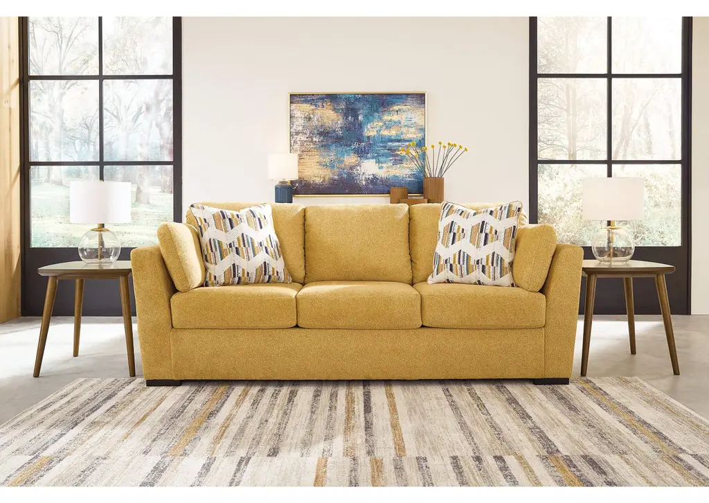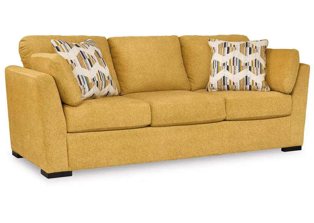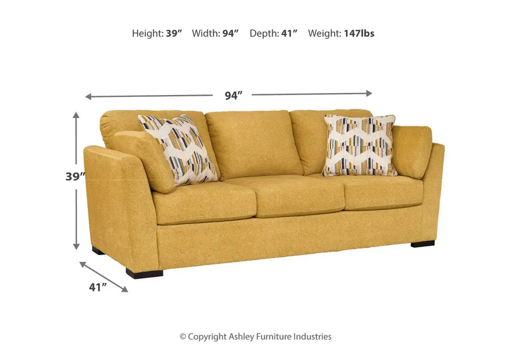 You want your home to reflect your modern, trendy eye for design. The Keerwick sofa is here to help. Bold, bright and beautiful, it adds a fashion-forward pop of color to your living room. Velvet-like upholstery and matching bolster pillows keep comfort at top of mind, whether you're lounging around or entertaining guests. How’s that for fresh style and functionality? Weight 153.000 lbs. (68.85kgs.)