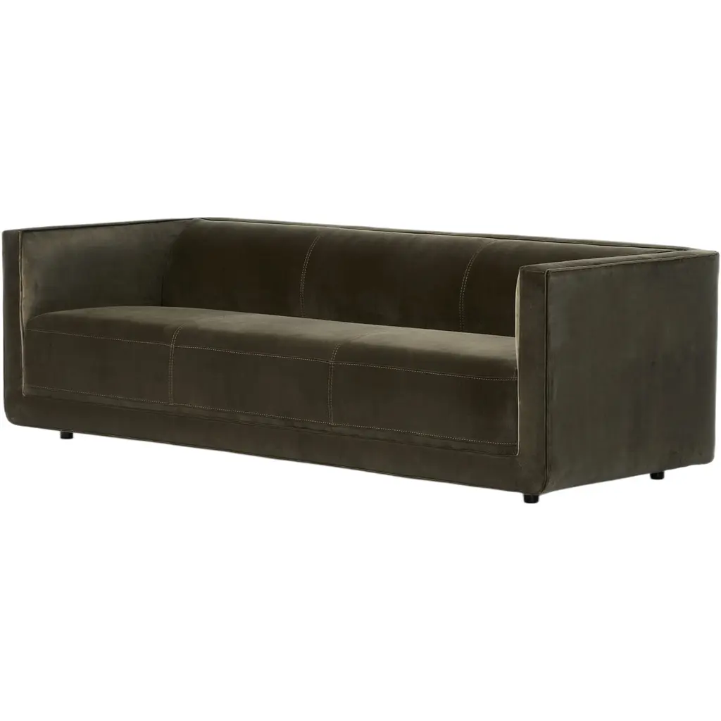 The Kelsey collection by Jonathan Louis Furniture features mid-century details and modern design that come together to create a look that lives in an era of its own. The elegance of this collection is rooted in its beautiful walnut wood base, sleek silhouette and stylish side bolsters. But despite the Kelsey's structured, chic looks, comfort prevails. Available in a sage green velvet upholstery for a look that's both eclectic and refined. This piece is part of the Kelsey Collection. View the Entire Collection Here.