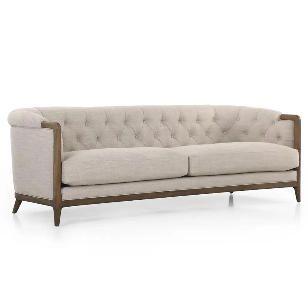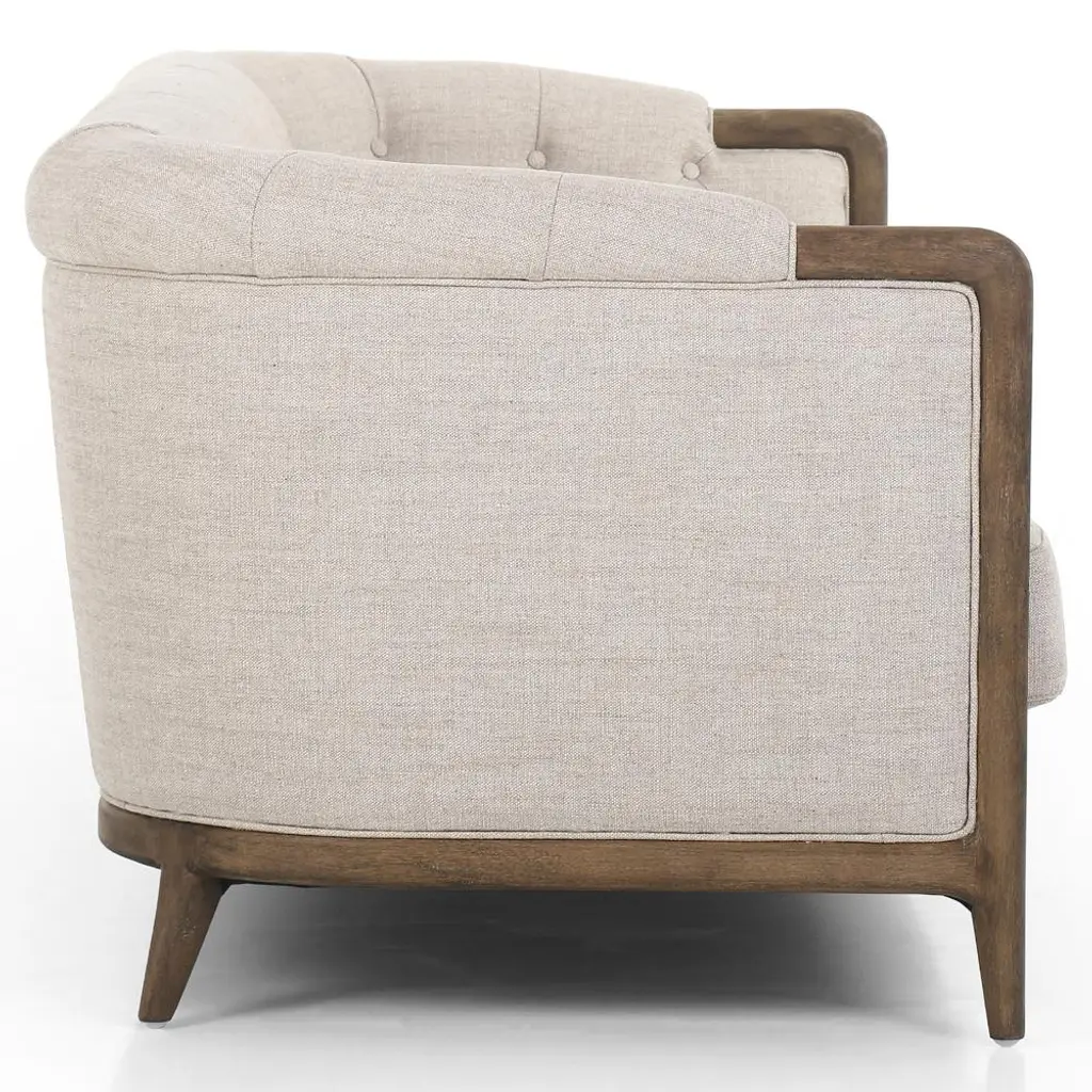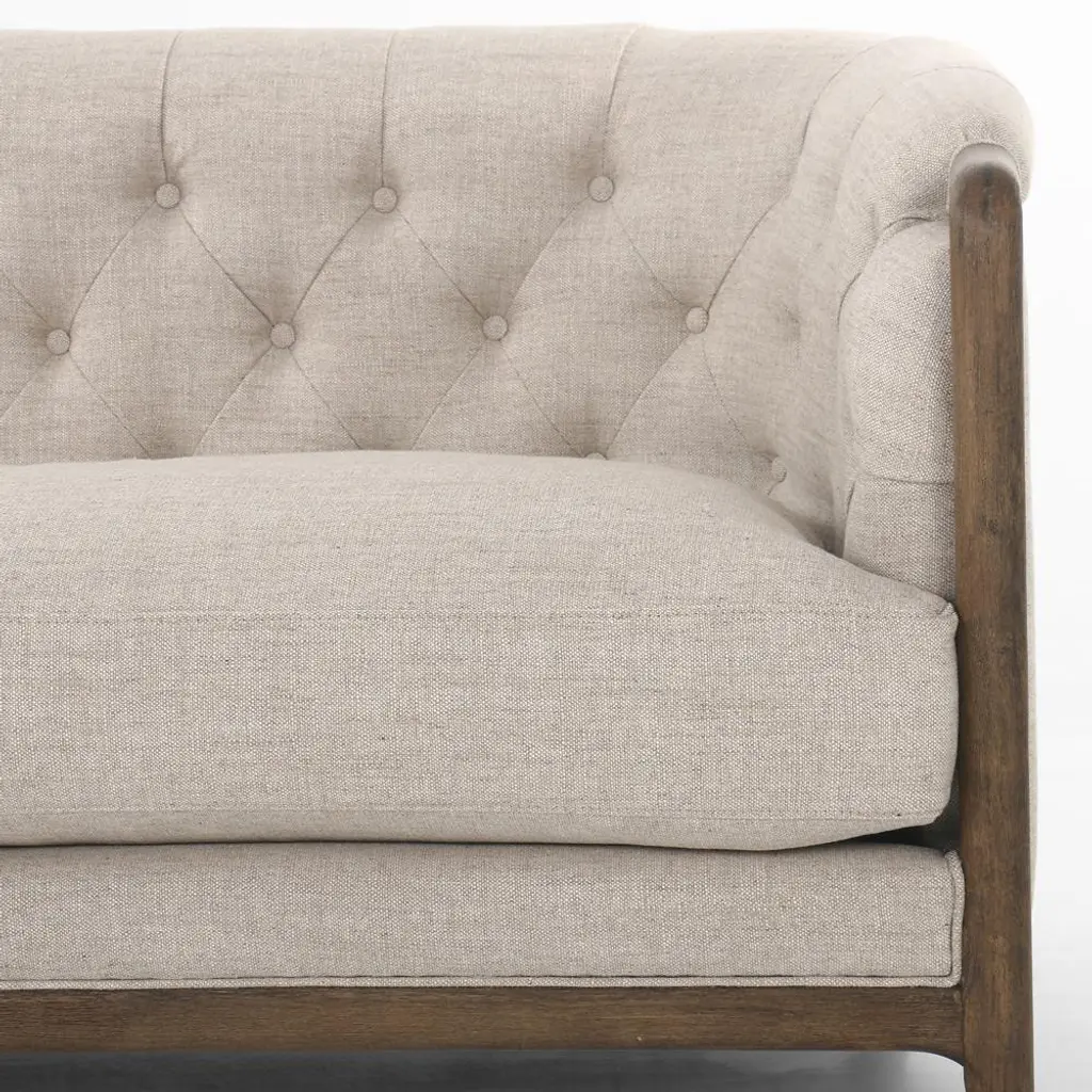 Khloe Rustic Lodge Beige Performance Brown Wood Tufted Sofa - 90"