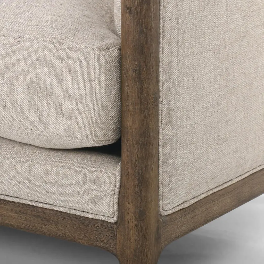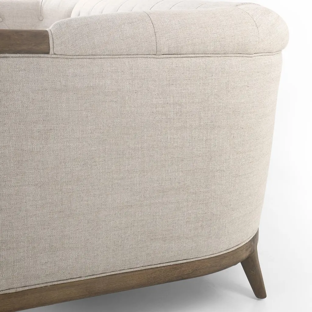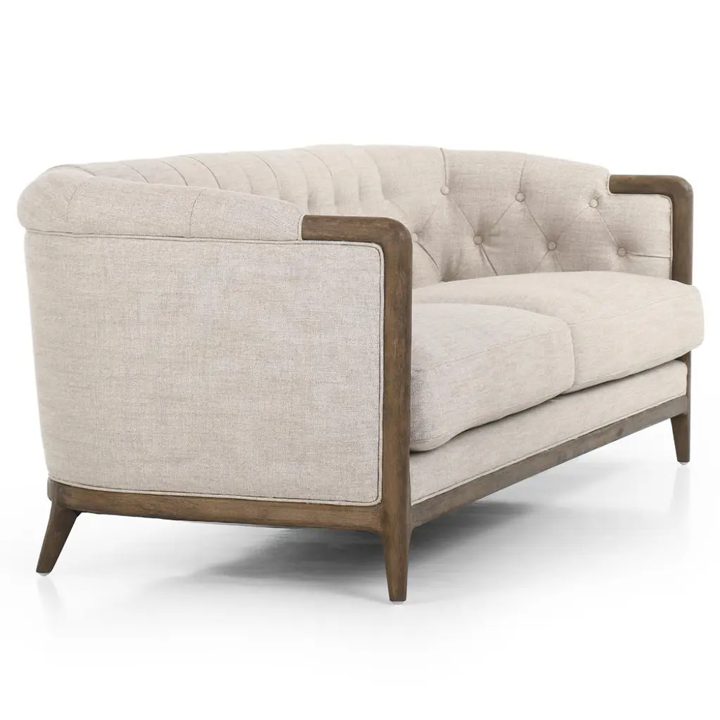 Khloe Rustic Lodge Beige Performance Brown Wood Tufted Sofa - 90"