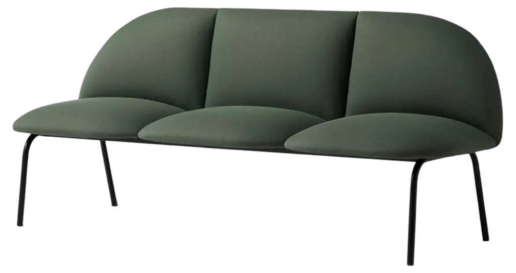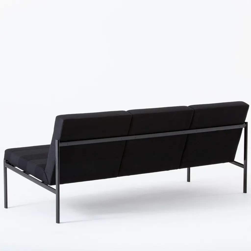 The Kiki Sofa has a frame made of distinctive oval steel tubing. The upholstery offers clean, smooth-edged contours that provide comfort and support. Compact in size and, like a mannequin, appealing in any color or fabric, its overall effect is one of memorable simplicity. The collection also includes the Kiki Bench, Lounge Chair, and Low Table. Modular in nature, the pieces in the collection can be combined in any number of configurations, while their compact size means they fit naturally into smaller spaces. Announcing a departure from designer Ilmari Tapiovaara's earlier work, Kiki employs a clean-cut design idiom.