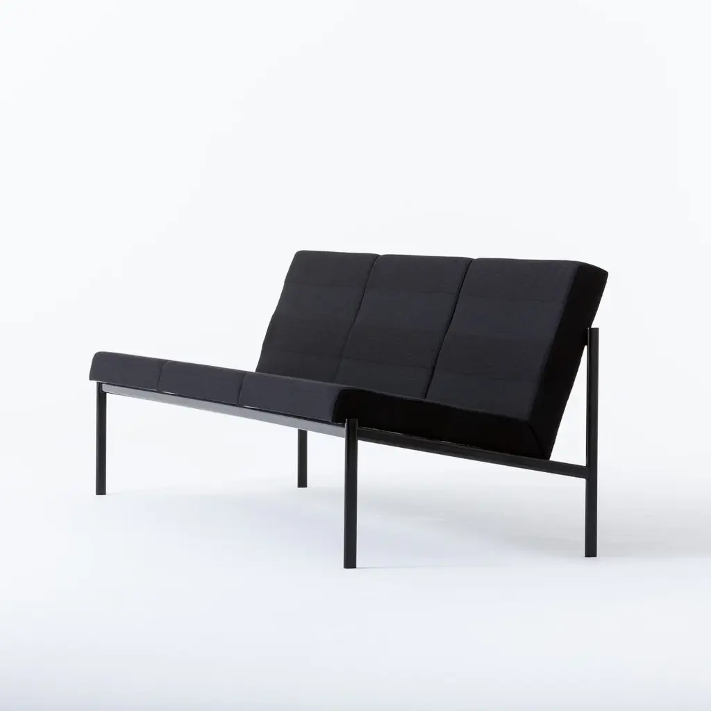 The Kiki Sofa has a frame made of distinctive oval steel tubing. The upholstery offers clean, smooth-edged contours that provide comfort and support. Compact in size and, like a mannequin, appealing in any color or fabric, its overall effect is one of memorable simplicity. The collection also includes the Kiki Bench, Lounge Chair, and Low Table. Modular in nature, the pieces in the collection can be combined in any number of configurations, while their compact size means they fit naturally into smaller spaces. Announcing a departure from designer Ilmari Tapiovaara's earlier work, Kiki employs a clean-cut design idiom.