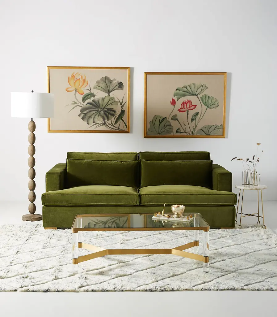 Two seat and four back cushions Cushions are removable Cushions are reversible for fabric Brass legs are not removable This piece is intended for indoor use No assembly required