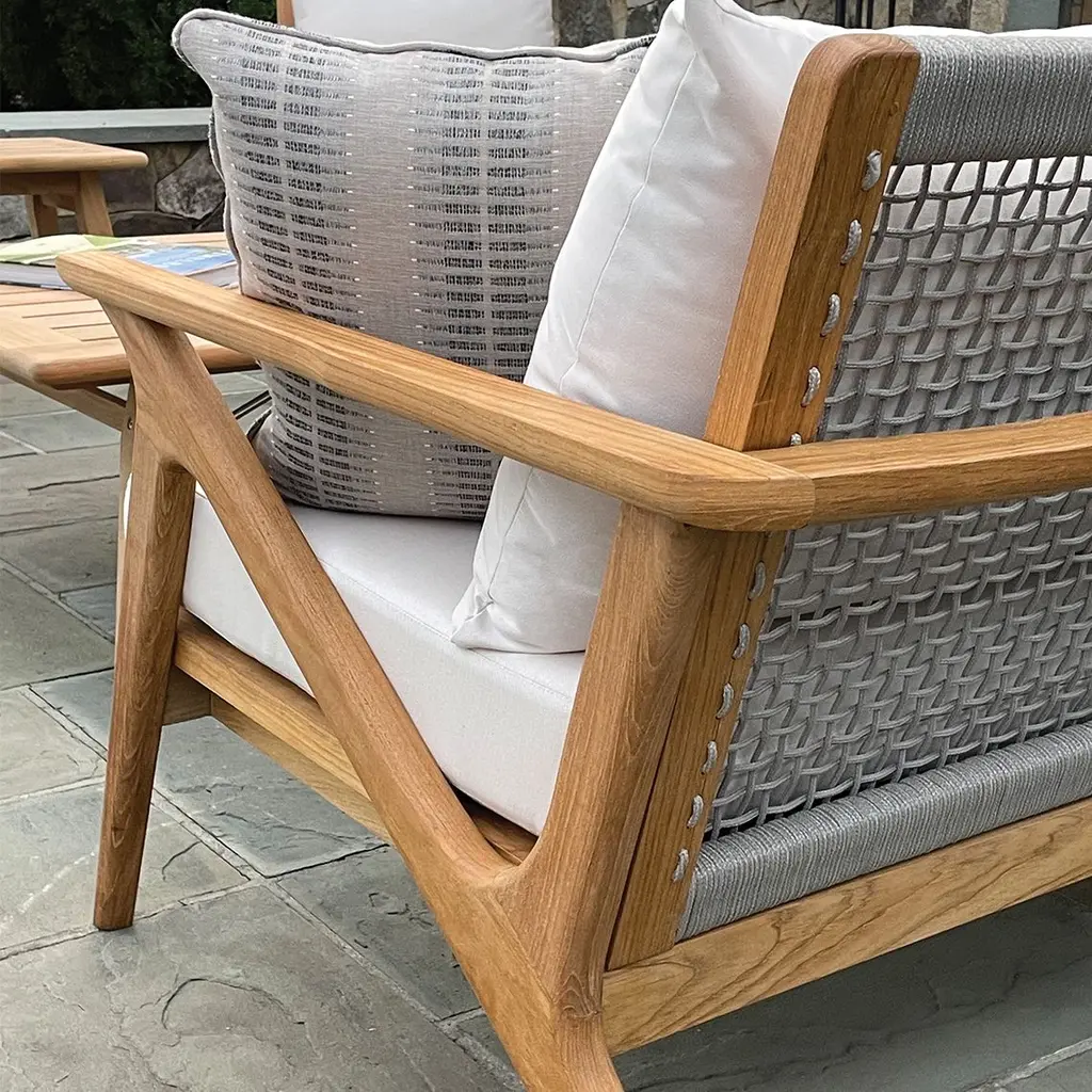 The SoHo Collection captures the bold, modern spirit of its namesake with sleek teak frames and a distinctive laced-rope design. Weather-friendly rope is expertly woven through solid teak adding structural integrity and visual appeal. The rope extends beneath the comfortable cushion providing a luxurious experience. Fabrics Note: Additional fabric options are available upon request. Please contact us for a quote: 800-762-5374 or customercare@frontera.com. Please Note: Kingsley Bate fabrics, canopies, cushions, covers, special order sling colors, and special order finishes are considered customized and may have longer lead times. These items cannot be cancelled, returned, or exchanged.