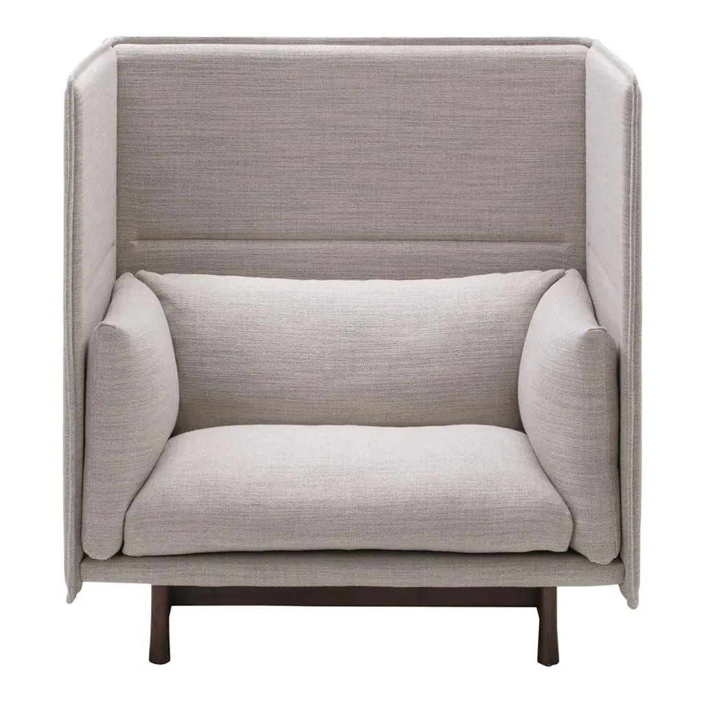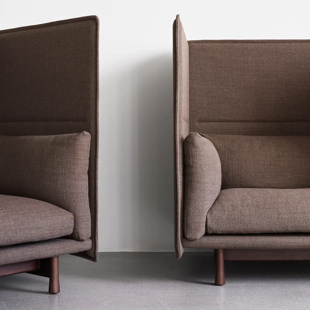 The Kite high back sofa breathes a unique character into a known typology with its slenderly linear outline alongside a softly inviting inner. Through its thinly upholstered panels that mimic the planes of a kite, the design adds an elegant sense of privacy to any room. The Kite high back sofa acts as a natural extension of the original Kite design while breathing a distinctive character into the form through its geometric high back planes, making for a strictly linear outline that is combined with the soft and curvy inner to invite the user in for a seat. With its high back identity, the design adds a sense of privacy and shelter to modern spaces through its soft panels that enhance the acoustics while seated in conversation.