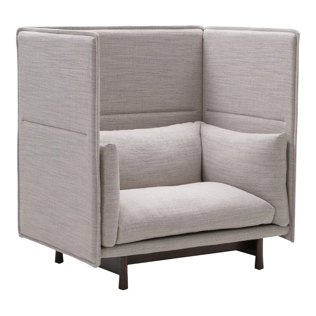 The Kite high back sofa breathes a unique character into a known typology with its slenderly linear outline alongside a softly inviting inner. Through its thinly upholstered panels that mimic the planes of a kite, the design adds an elegant sense of privacy to any room. The Kite high back sofa acts as a natural extension of the original Kite design while breathing a distinctive character into the form through its geometric high back planes, making for a strictly linear outline that is combined with the soft and curvy inner to invite the user in for a seat. With its high back identity, the design adds a sense of privacy and shelter to modern spaces through its soft panels that enhance the acoustics while seated in conversation.