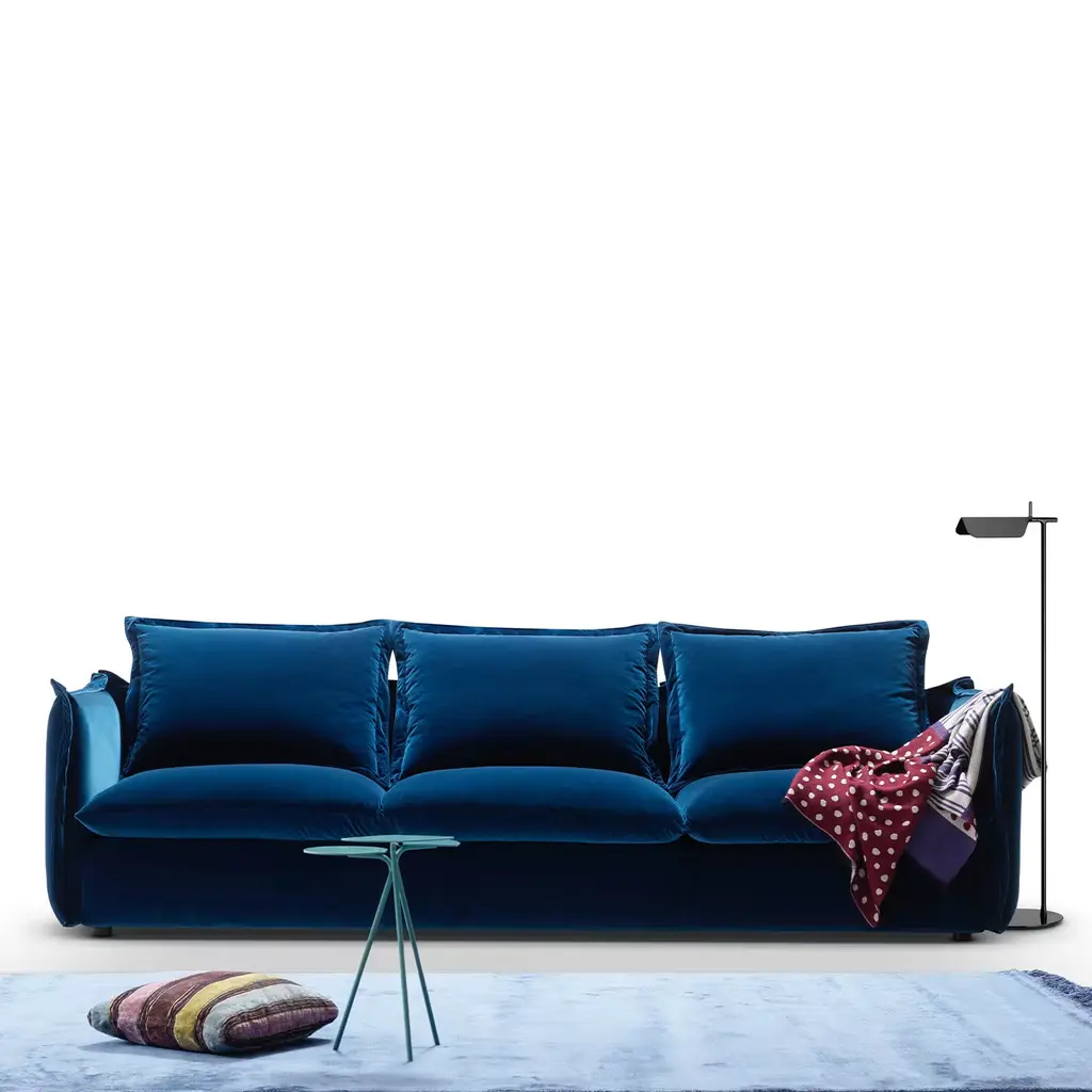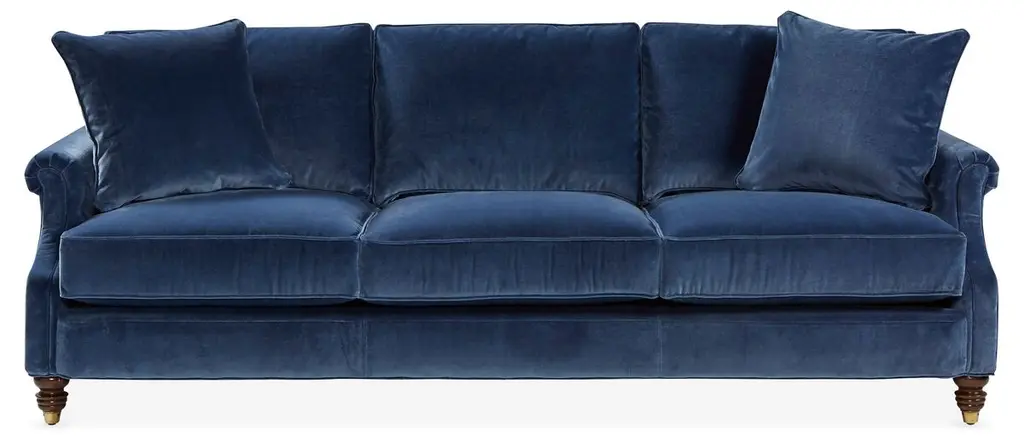 This stately sofa brims with sartorial excellence, evident in the impeccably stitched profiles and top-quality of its velvet upholstery offered in a relaxing tone of midnight-blue. The wooden frame - also shaping the 80cm-high armrests - is padded with non-deformable polyurethane rubber and lined with polyester, while the plump back cushions and seat (46cm-high) cushions combine goose feathers and polyurethane for unrivaled coziness. Please consult the Concierge for available color options.