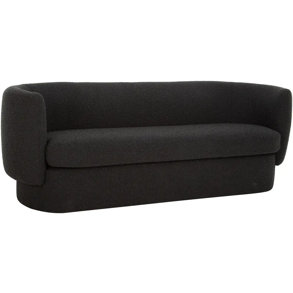 Soft as a cloud while exuding contemporary cool, the Koba sofa comes in black with spacious seating for four. This deeply seated sofa's curved lines, extra-comfort foam filling and solid wood construction make this couch soft and supple at the same time.