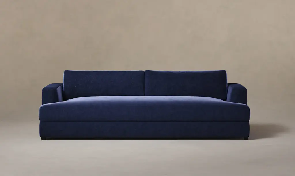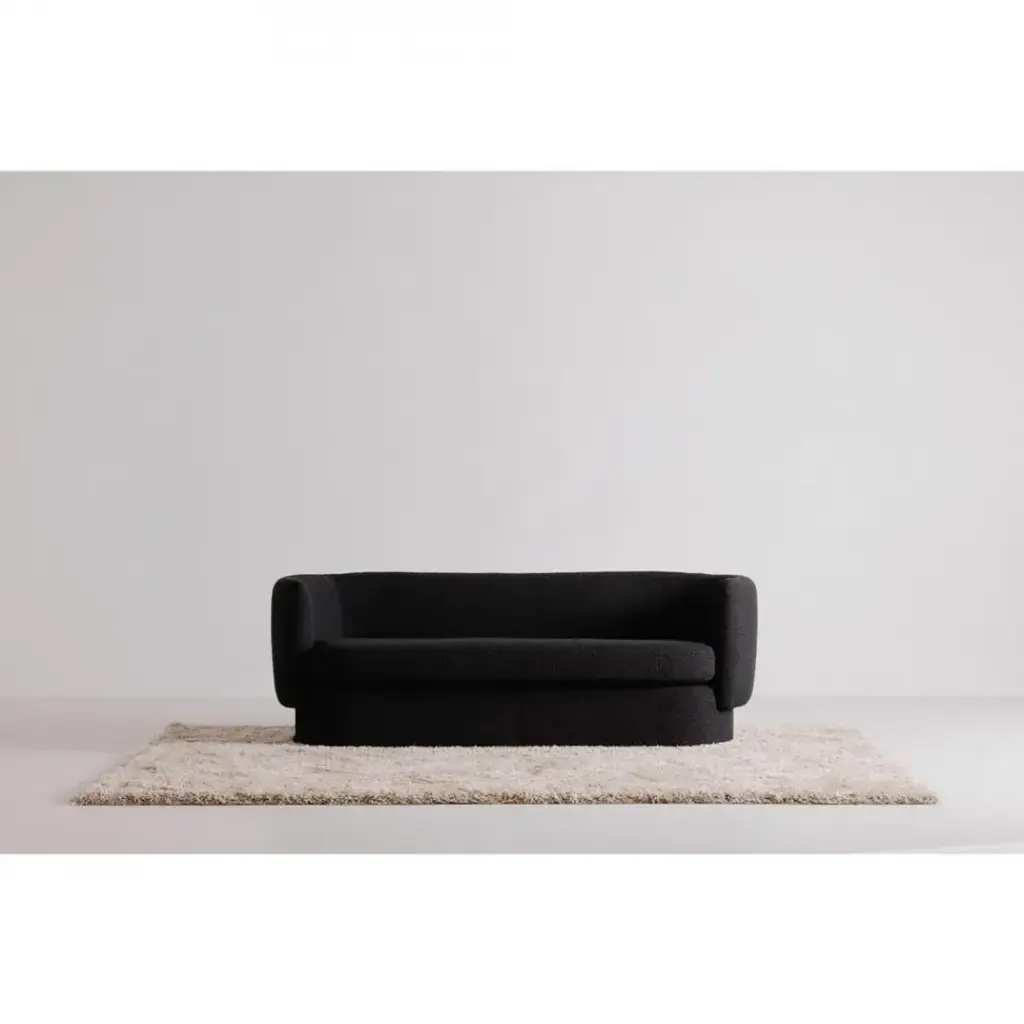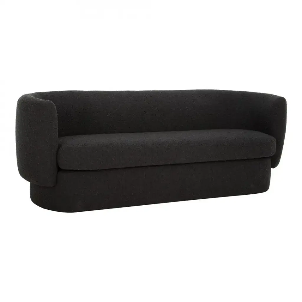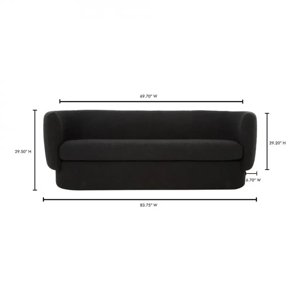 Soft as a cloud while exuding contemporary cool, the Koba sofa comes in black with spacious seating for four. This deeply seated sofa's curved lines, extra-comfort foam filling and solid wood construction make this couch soft and supple at the same time.