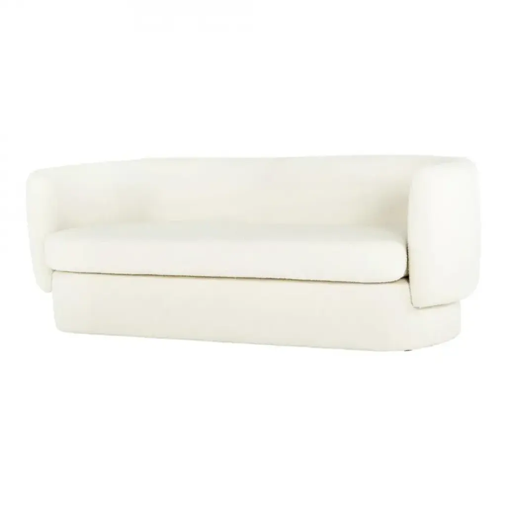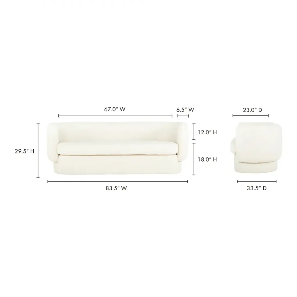 Like sitting on a cloud, the Koba sofa comes in white, with spacious seating for four, this deeply seated sofa's curved form is serene style made simple. With clean lines, extra-comfort foam filling, and solid wood construction make this couch soft and supple at the same time.