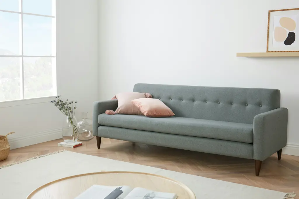 Showcasing retro elegance with its versatile frame and Mid-Century design, the Korver Sofa makes for a classic centerpiece in any living room. With its chic button tufting, ultra deep frame, and adaptable design, this sofa leaves a strong impression in any room layout. Stretch out on its supportive cushions and admire its Mid-Century accents, delivering form and sophistication for a classic look and feel.