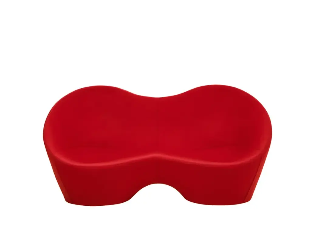 A two-seater Sofas with a voluptuous, organic and ergonomic shape.'I have had a great interest in organic shapes for 20 years. I feel the need to "soften" the goods around me to make our lives more casual and relaxing. I want to be enveloped in my KOUCH'. Cit. Karim Rashid.MATERIALS:Cold-foamed polyurethane structure around a metal reinforcement frame. Upholstery in leather, faux leather or fabric.