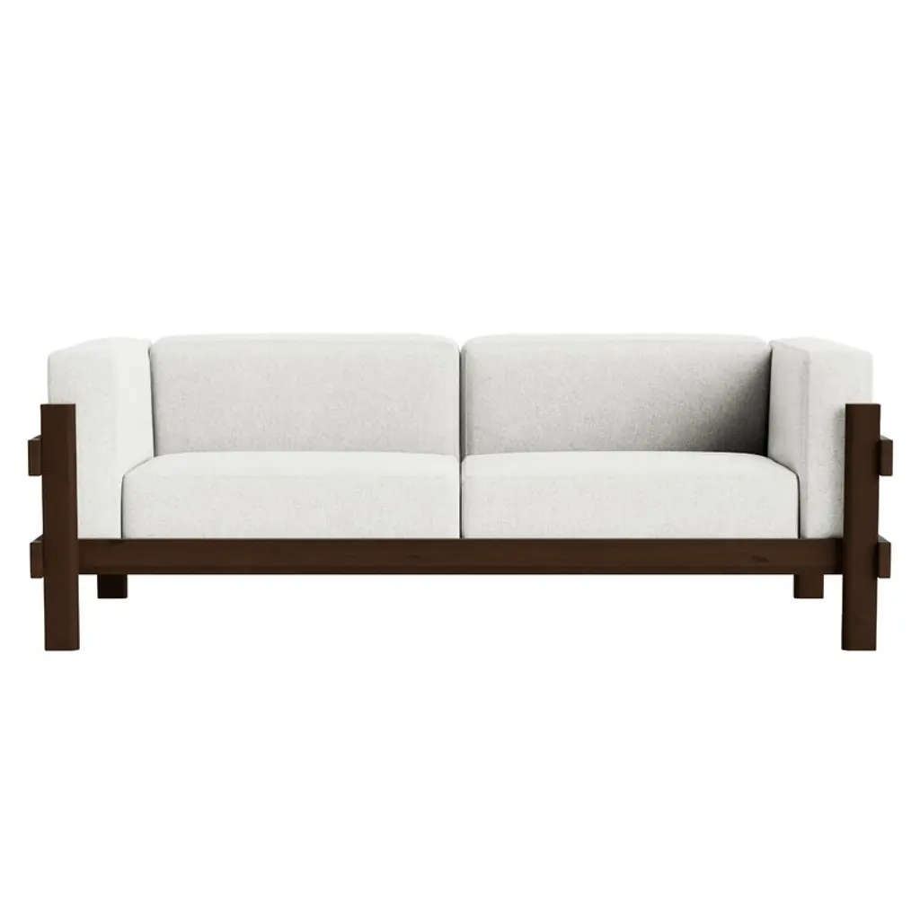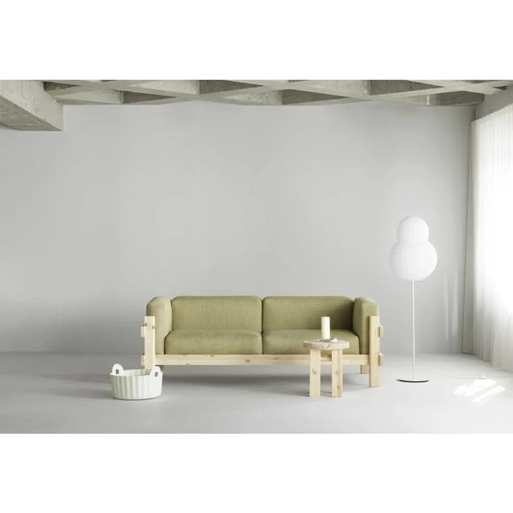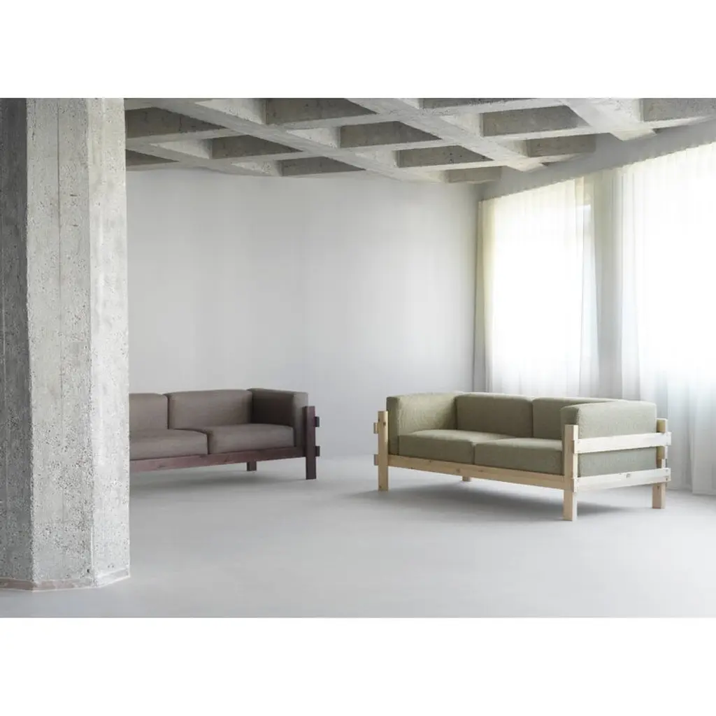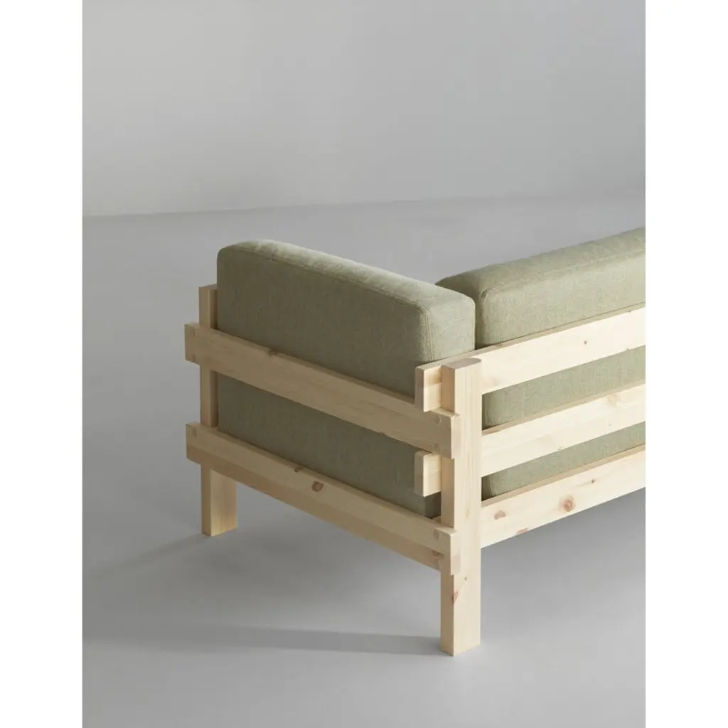 Normann Copenhagen’s Kube sofa brings a blend of sculptural strength and generous comfort to the living room. The three-seater wooden sofa features a solid pine frame built from thick planks and finished with refined joinery details. The bold, almost brutalist look of the exposed frame is softened by fabric-upholstered seat cushions that make the sofa inviting and perfect for laid-back lounging. Designed by Simon Legald, the Kube sofa offers a modern Scandinavian take on classic mid-century wooden sofas, drawing inspiration from the bare-frame designs of the mid-20th century. Its timeless expression suits a wide range of interiors from contemporary homes and cottages to public spaces.