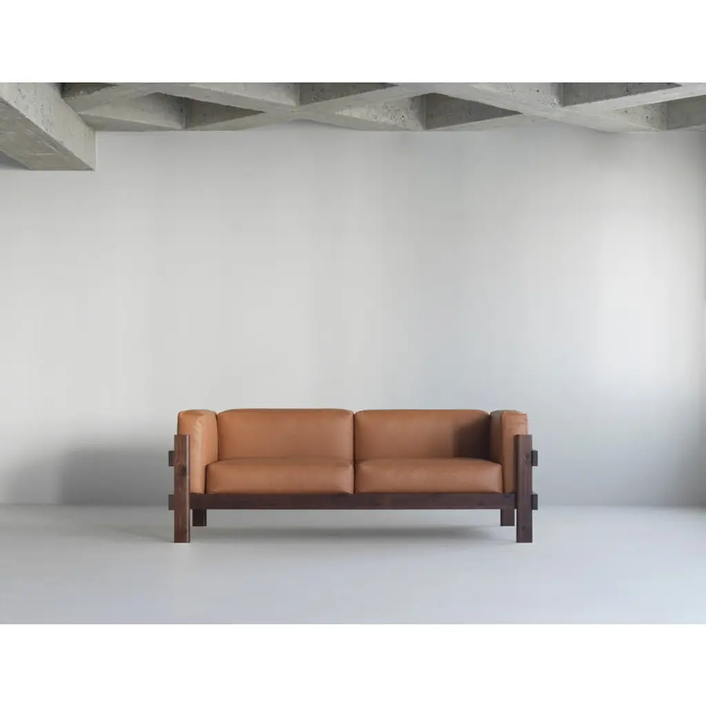 Normann Copenhagen’s Kube sofa brings a blend of sculptural strength and generous comfort to the living room. The three-seater wooden sofa features a solid pine frame built from thick planks and finished with refined joinery details. The bold, almost brutalist look of the exposed frame is softened by leather-upholstered seat cushions that make the sofa inviting and perfect for laid-back lounging. Designed by Simon Legald, the Kube sofa offers a modern Scandinavian take on classic mid-century wooden sofas, drawing inspiration from the bare-frame designs of the mid-20th century. Its timeless expression suits a wide range of interiors from contemporary homes and cottages to public spaces.