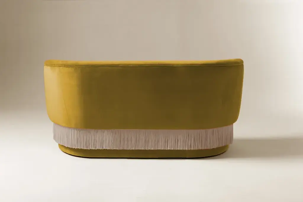 Upholstery: Fabric or LeatherPipping: Fabric or LeatherFringes: Silk fringes, more color optionsWith voluptuous curves and perfect poise, La Folie exalts passion and fantasy as if you were in a burlesque show at Moulin Rouge. Let yourself be drawn by this flirtatious feeling of sensuality and a touch as smooth as silk.