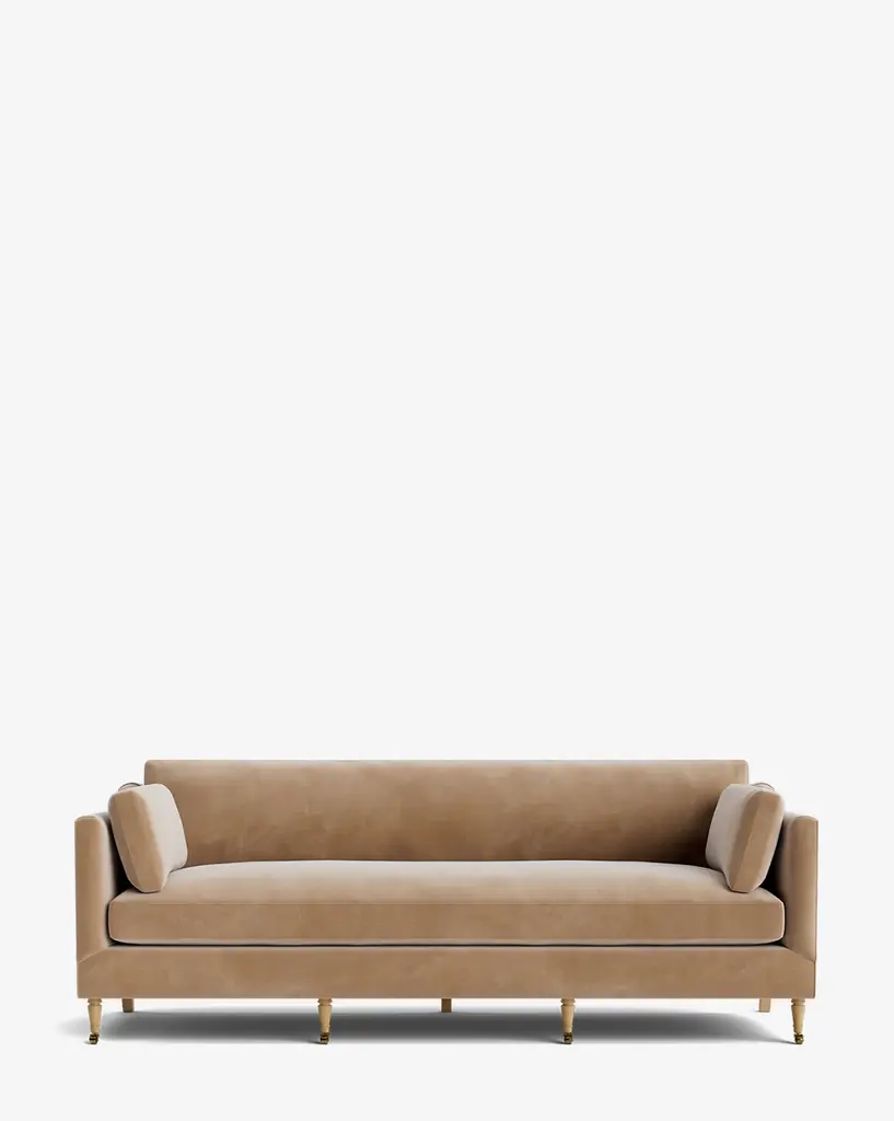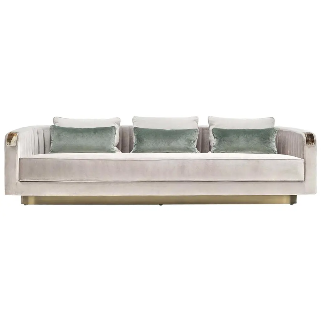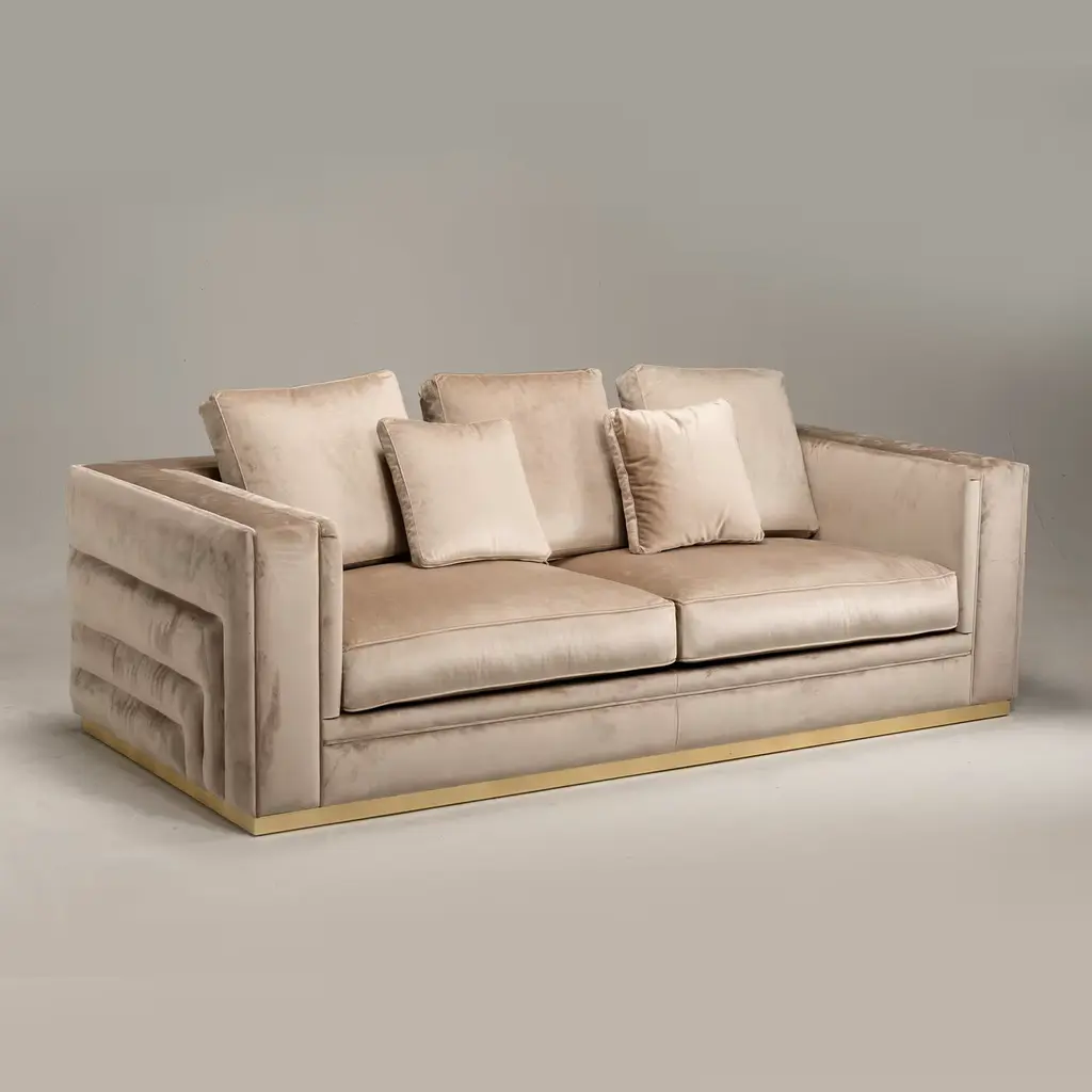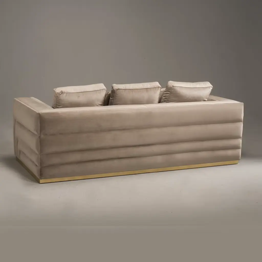 The Labyrinth Sofa combines old with new to bring a cosmopolitan touch to any contemporary living space. Boasting clean lines to create a geometric silhouette, this glamorous sofa is upholstered in ultra-soft velvety fabric. Set on a square gold base and finished with linear side quilting for a refined touch.