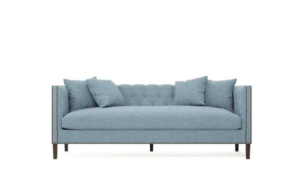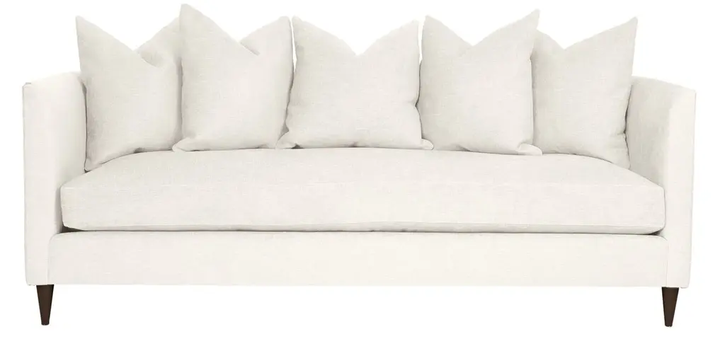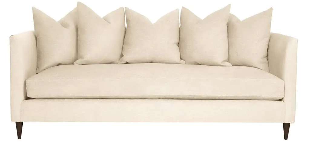 Exclusive to One Kings Lane: The exposed tapered legs, slender arms, and curved back give this sofa a fresh, light look. At the same time, it offers classic comfort thanks to the foam-core seat cushion and the plush back pillows. The stain-resistant Crypton upholstery, a flat-pile chenille, makes this sofa a savvy choice for households with children, pets, or spill-prone adults.