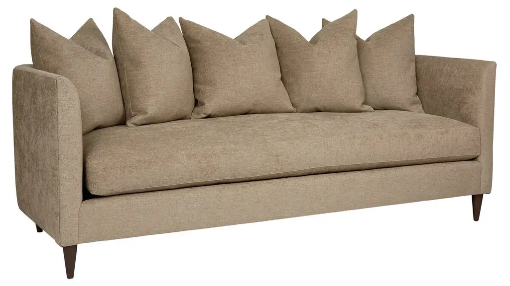 Exclusive to One Kings Lane: The exposed tapered legs, slender arms, and curved back give this sofa a fresh, light look. At the same time, it offers classic comfort thanks to the foam-core seat cushion and the plush back pillows. The stain-resistant Crypton upholstery, a flat-pile chenille, makes this sofa a savvy choice for households with children, pets, or spill-prone adults.