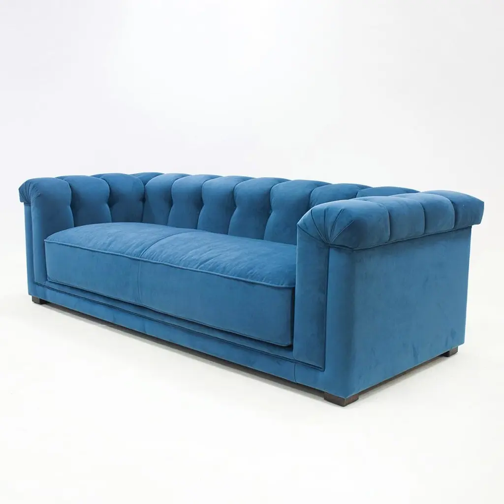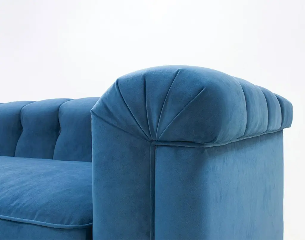 Sofa Lander with solid wood structure, upholsteredand covered with high quality blue velvet fabric Cat 1.Available in:L 250 x D 95 x H 70cm, price: 7900,00€.L 225 x D 95 x H 70cm, price: 7200,00€.L 200 x D 95 x H 70cm, price: 6900,00€.L 175 x D 95 x H 70cm, price: 5900,00€.Also available with other fabric finishes or in leatheron request.