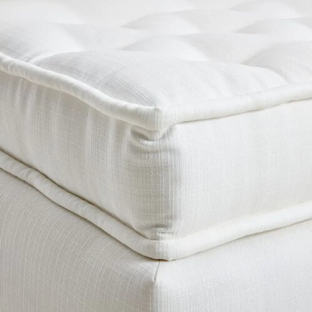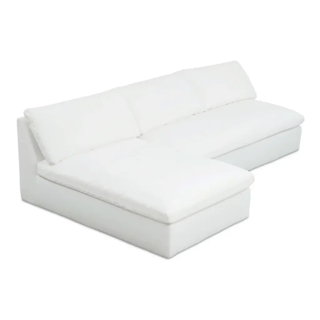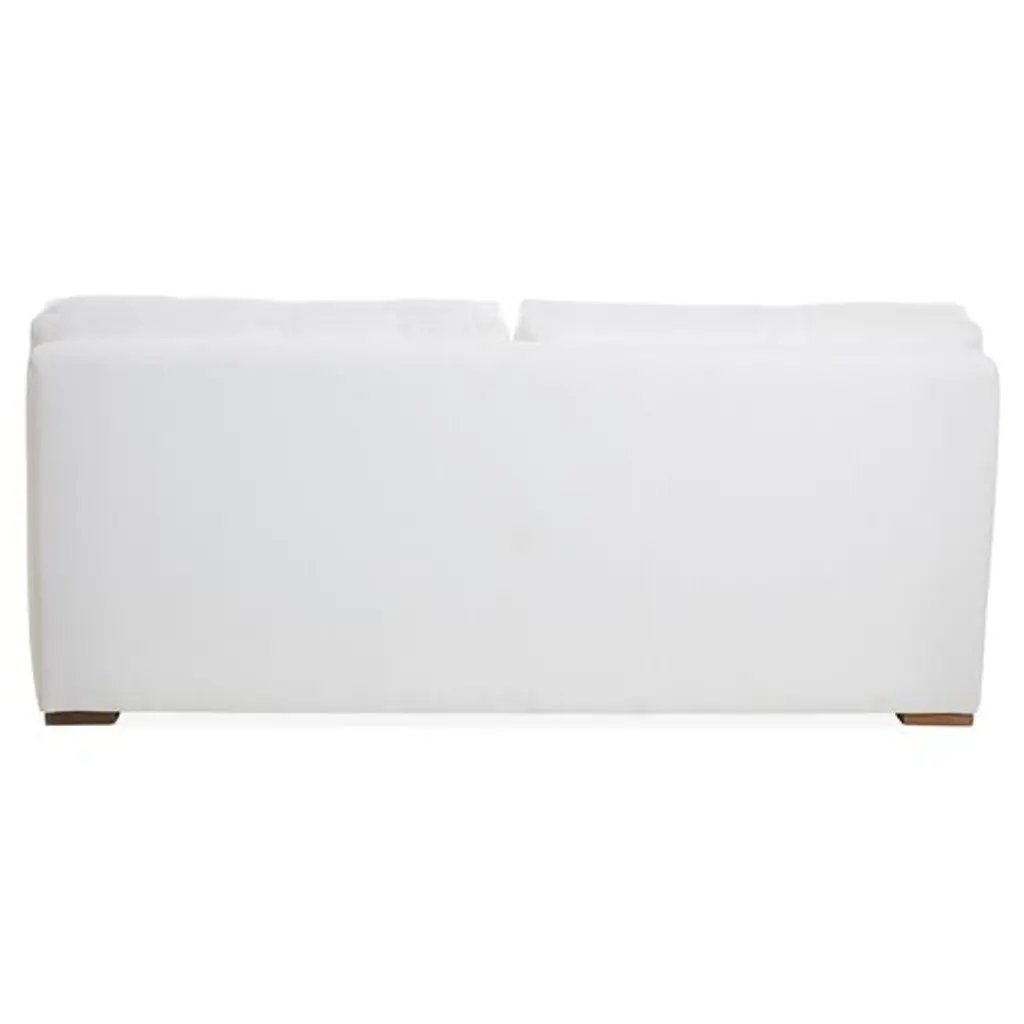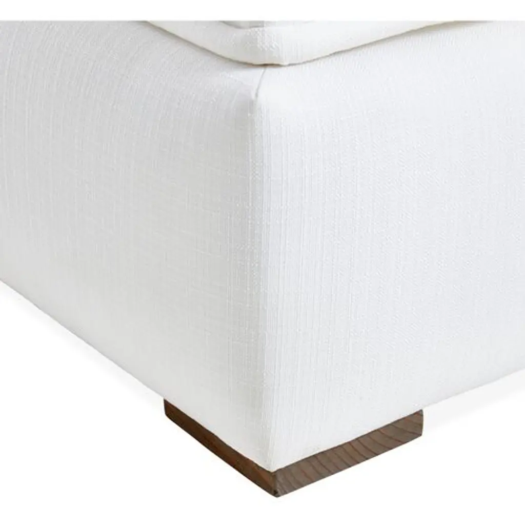 Designed by us and available only at One Kings Lane: Boasting a clean-lined, armless silhouette, this sofa is framed in reclaimed alder and set on block feet. Stylish on its own or as a module in a sectional, its fully upholstered body and tufted box-style seat cushion are covered in a durable woven fabric that mimics the look and feel of linen, while an ample fill of foam wrapped with Dacron and Trillium ensures long-lasting comfort. Two rectangular back cushions complete this design.