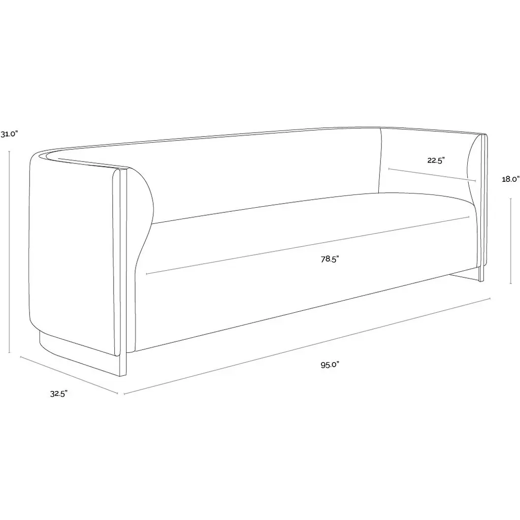 The Larron Sofa balances mixed materials to bring this contemporary design to life. Expertly upholstered in a two-tone combination of abbington black and hobbes night fabrics for a mix of contrasting textures. Gold stainless steel metal inlay and padded curves accentuate the chair's curved silhouette. Performance fabric is moisture repellent, durable and easy to clean.