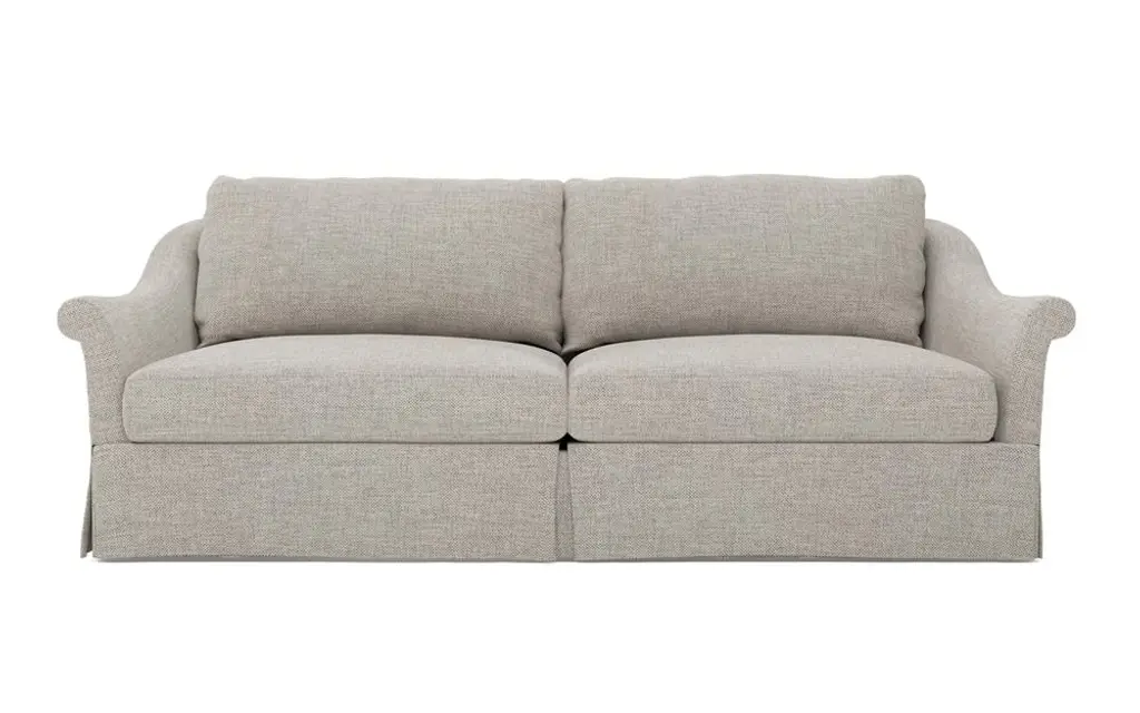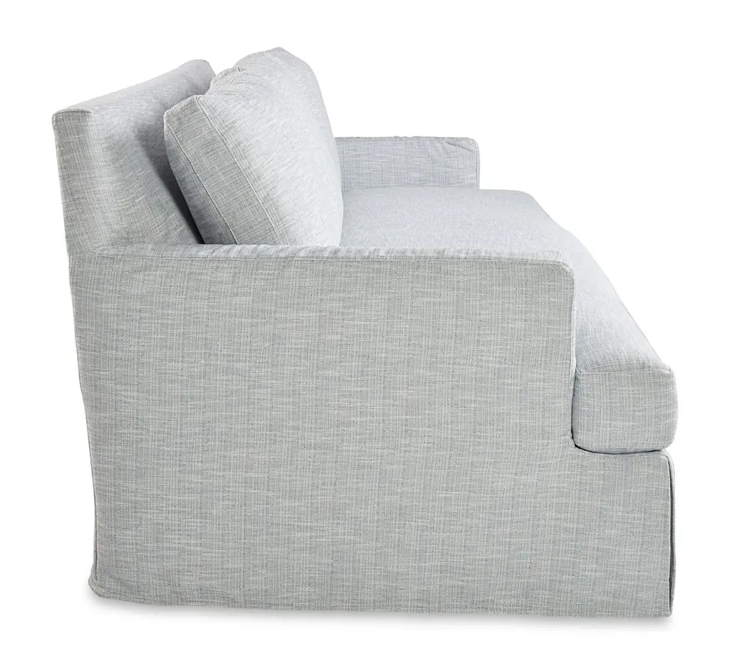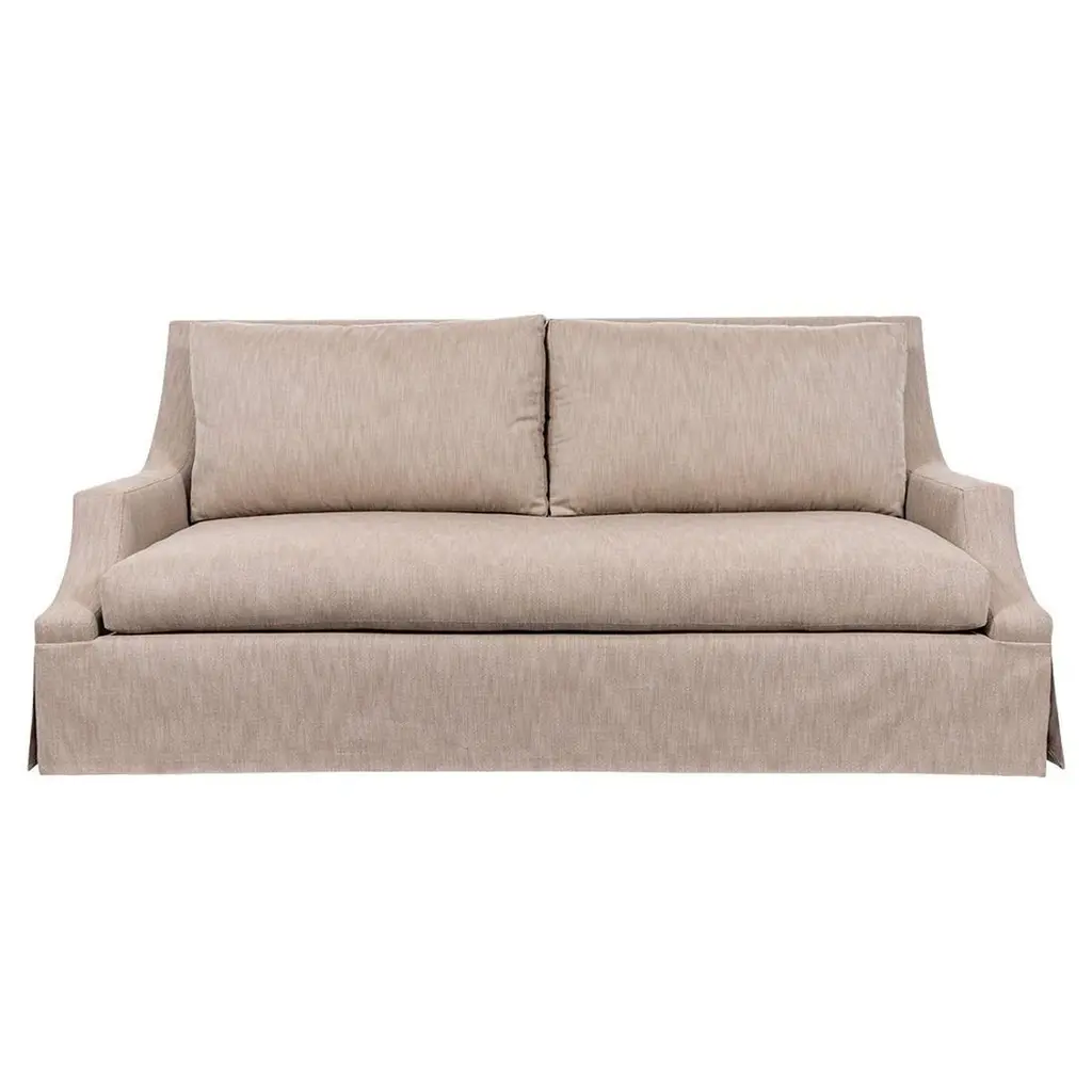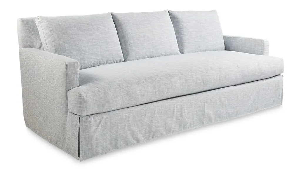 Effortlessly elegant, this cozy sofa impresses guests with the best in comfort and durability. A kiln-dried hardwood frame sets a sturdy foundation, while a down-and-feather fill ensures long-lasting loftiness and support. Neutral-hued upholstery and a slipcover in WearProof--a durable, stain-resistant fabric--completes this sofa's tailored design. Made in the USA.