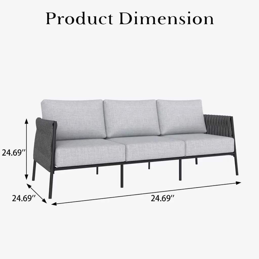 This stunning outdoor patio rope-woven sofa brings a touch of modern elegance to your outdoor oasis. The widened olefin rope, meticulously hand-woven over durable, powder-coated metal frame, creates captivating visual texture and sense of sophisticated style. Relax on deep and wide loveseat, propped against 6 inches cushion of elastic foam that's perfect for outdoor relaxation. The easy-clean materials ensure effortless maintenance, allowing you to focus on enjoying the beauty and tranquility of your outdoor space.