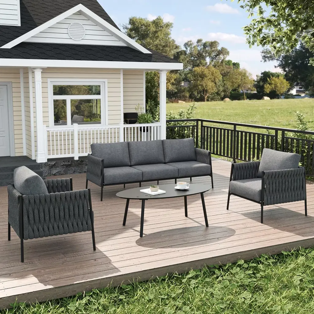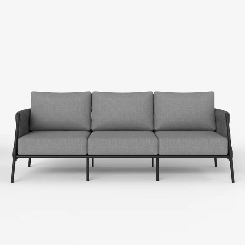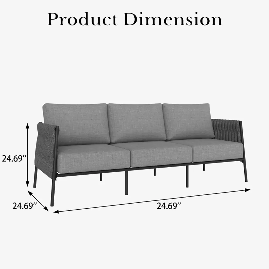 Layinsun Outdoor Patio Woven Rope Sofa, 3-person Deep Seating Modern Couch 3-seat For Outside