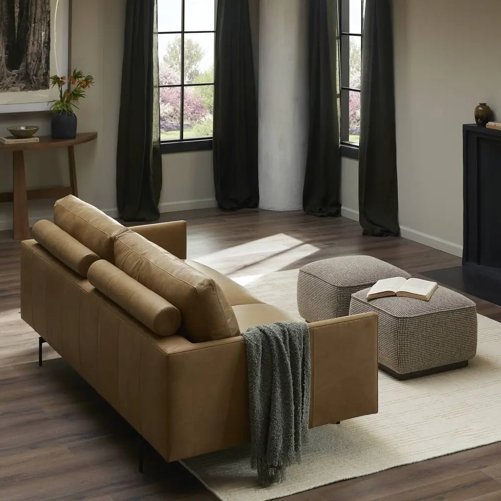 The Leander Sofa embodies a minimalist form that redefines contemporary seating. With its slim profile, expert tailoring, and plush cushions, it offers unparalleled comfort. The sleek metal legs and compact sizing make it a versatile anchor for smaller living spaces. Crafted with high-performance materials, this sofa is designed to withstand spills, stains, high traffic, and wear, ensuring long-term comfort and unmatched durability.