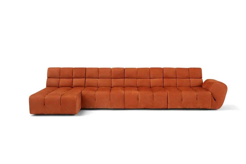 Leather Palmo Sofa Composition by Amura LabDimensions: W 417 x D 176 x H 80 cmMaterials: FRAME: poplar multiply SUSPENSIONS: rubber and polypropylene belts. SEAT: polyurethane foam, density 30 kg/m³ , Mollapiuma and Memory foam. BACK AND ARMREST: polyurethane foam, density 25 kg/m³ , Mollapiuma and Memory foam.Amura Lab:In their gaze, they carry the strong and poignant beauty of Southern Italy. In their hands, the passion and careful craftsmanship with which they create timeless design environments, capable of combining the memory of their origins with the future of design.It is within this microcosm made of culture, ever-present traditions, artistic influences, and continuous innovation that Amura was born, the Made in Italy furniture brand that embodies the strong and authentic beauty of Southern Italy. A young company that passionately and meticulously pursues the creation of environments with a timeless design, capable of merging the memory of its origins with the future of design. From the careful selection of materials to the pursuit of innovative designs, each phase of creation carries the indelible mark of the most authentic atmospheres of the South