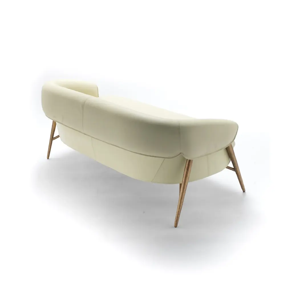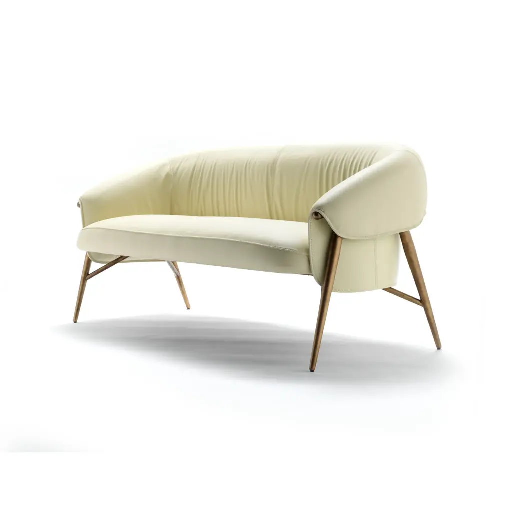 Montgomery D embodies the elegance and poise of Montgomery W, doubling the sophistication. It features a fixed four-legged steel frame available in various finishes. The slightly padded backrest is upholstered in full-grain leather on the outside and high-quality leather on the inside, while the seat is padded and covered in high-quality leather. The colors of the materials are harmoniously coordinated. This refined and versatile two-seater sofa enhances any home or contract environment.