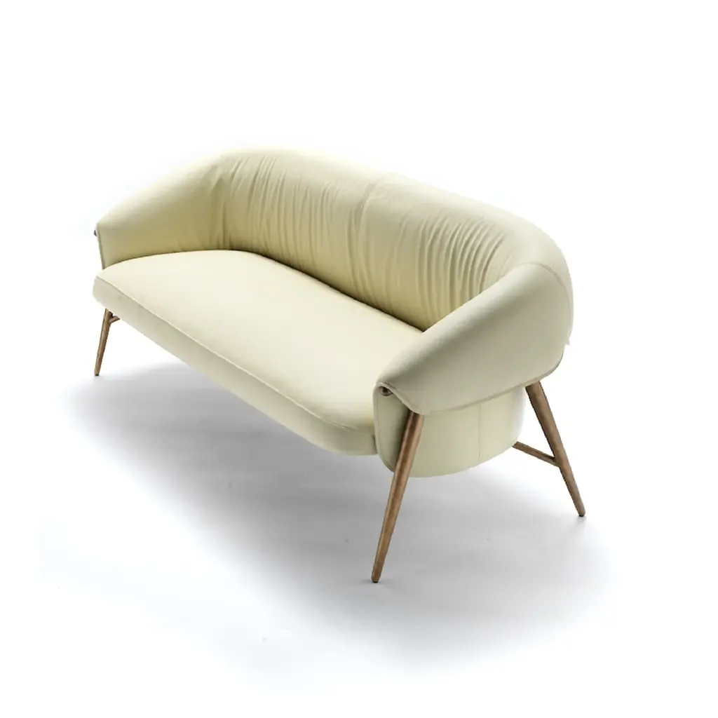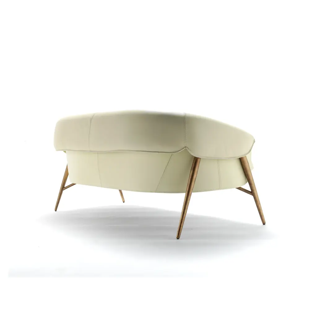 Montgomery D embodies the elegance and poise of Montgomery W, doubling the sophistication. It features a fixed four-legged steel frame available in various finishes. The slightly padded backrest is upholstered in full-grain leather on the outside and high-quality leather on the inside, while the seat is padded and covered in high-quality leather. The colors of the materials are harmoniously coordinated. This refined and versatile two-seater sofa enhances any home or contract environment.