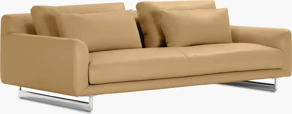 The most lavish sofa collection we've ever produced, Lecco (2019) embodies a spirit of expansiveness with extra-deep seating, abundant pillows and generous down filling. This collection was meticulously designed, down to its beautifully rounded corners, for which a special stitching technique was invented. Effortlessly cool but warmly inviting. Made in Italy.