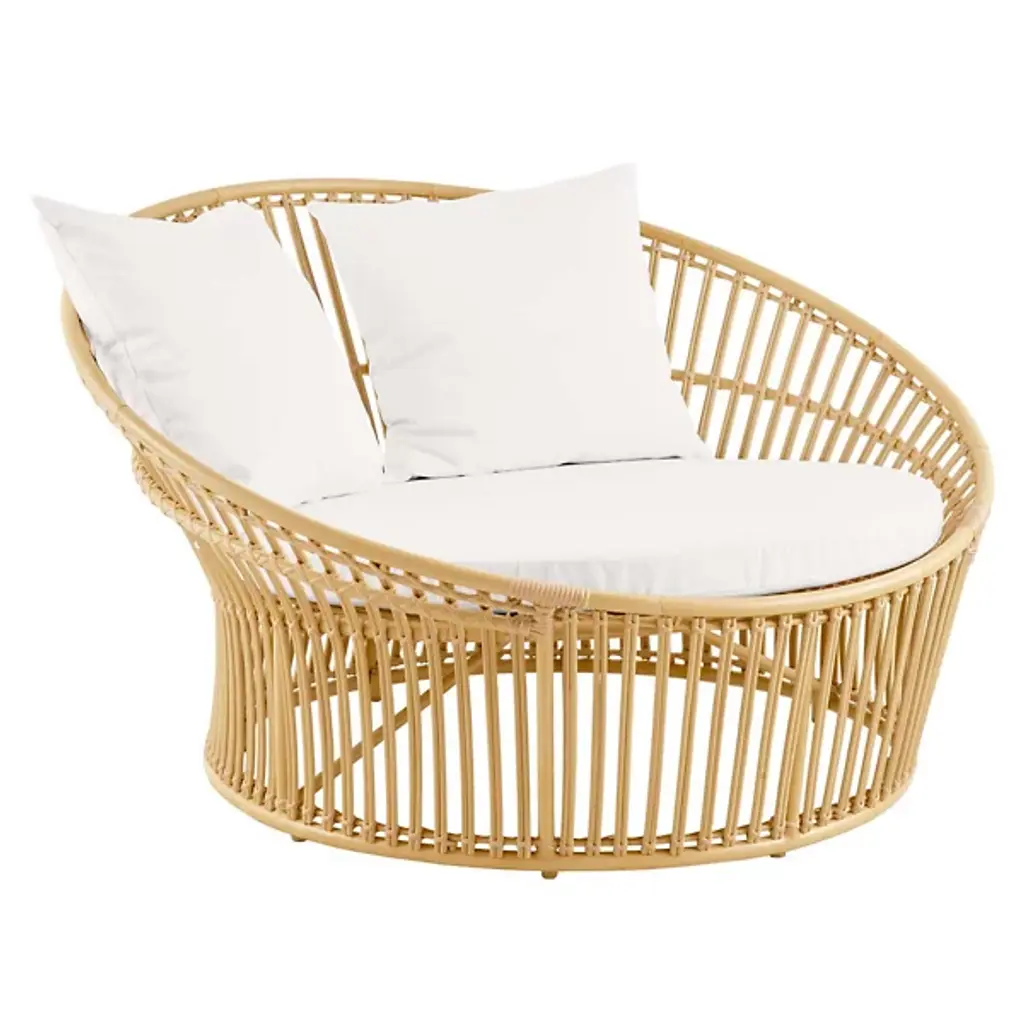 With an artful open weave in a light bamboo finish, our all-weather wicker Lenco outdoor sofa has us dreaming of our very own glamorous lanai. Featuring a plush, deep seat cushion that inspires cozy relaxing, its charming versatility makes it the darling of patios and decks. Ready to customize with our selection of indoor-outdoor pillows, its rust-resistant aluminum frame looks and feels stylish even in hot and humid climates.