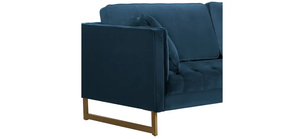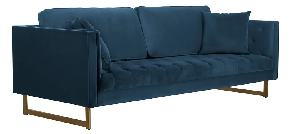 Make a chic statement in your living room with the Lenox Sofa. Featuring a glam and modern silhouette, the Lenox is upholstered in a rich velvet fabric that feels exceptionally soft to the touch. Channel tufting highlights the stunning sheen in the velvet, while the striking antique brass finished metal base anchors the glamorous look of this sofa. Accompanied with pillows and diamond stitch cushion seats, the Lenox Sofa will be the most comfortable seat in the house.