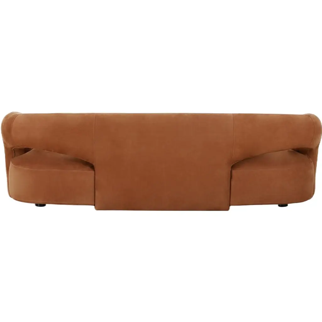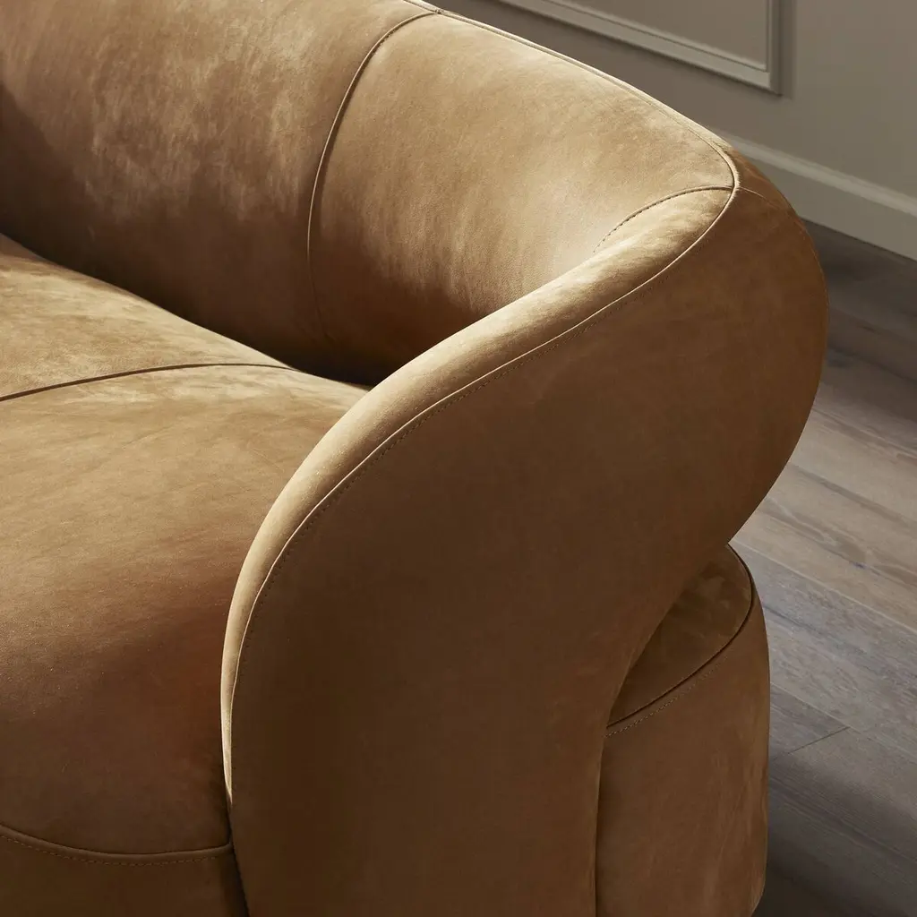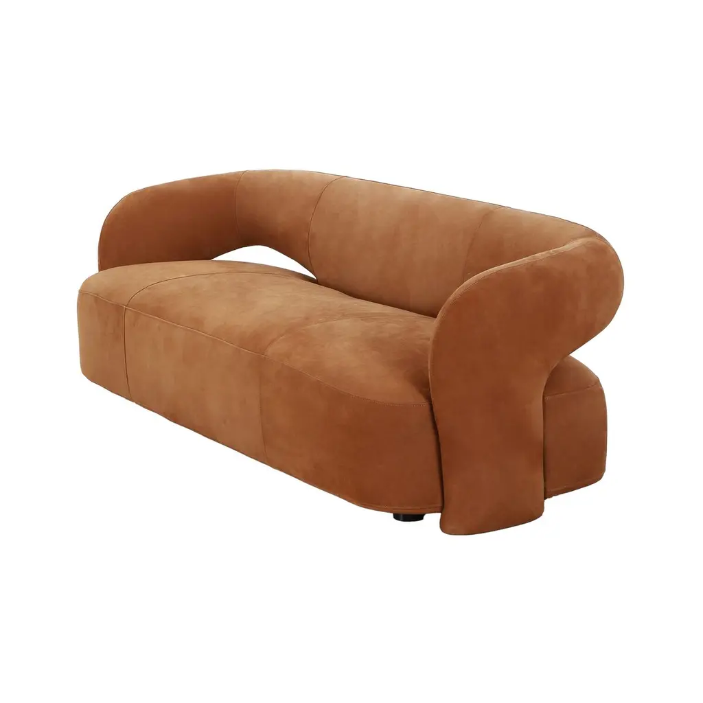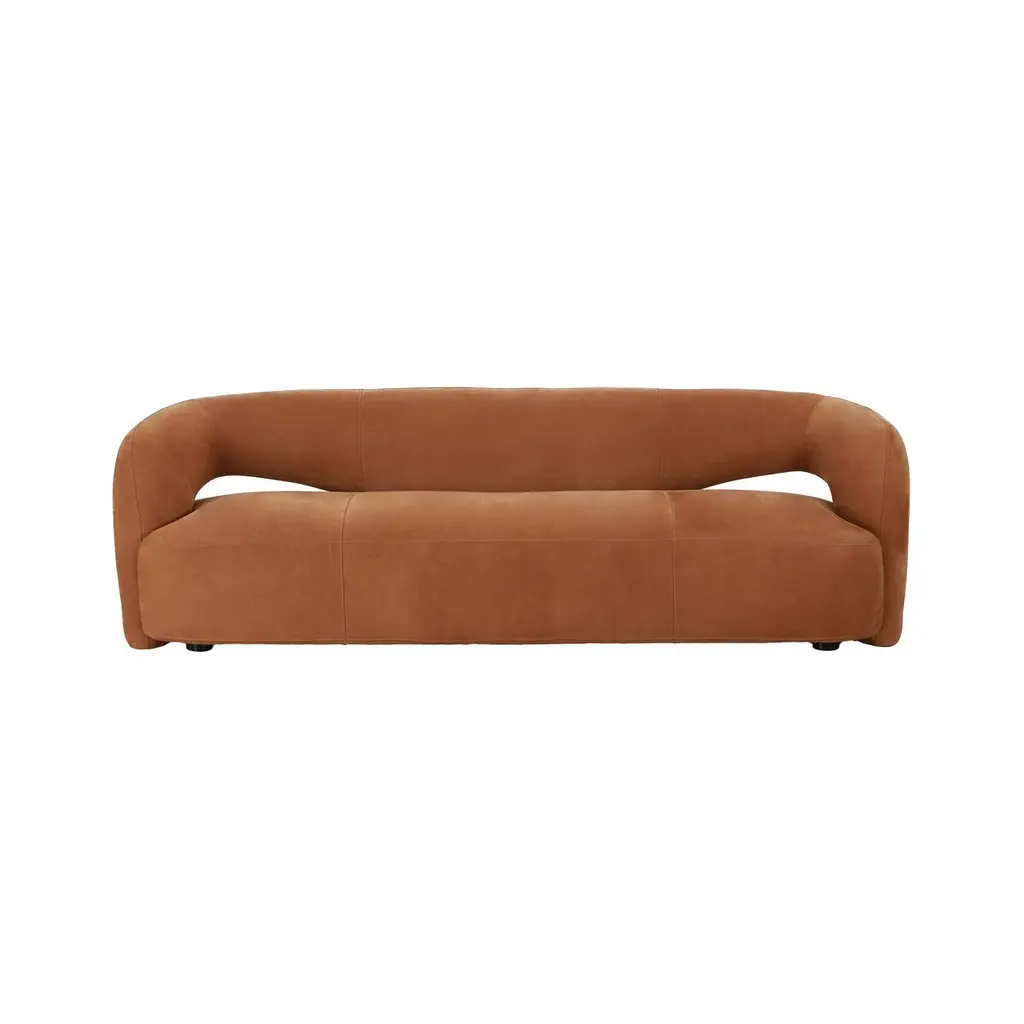 Experience a fluid play on seating with the Leon Sofa, a statement-making piece that exudes elegance and comfort. This sofa is designed with subtle cutouts on the back and plush arms that embrace the bench seat, offering both style and coziness. Upholstered in a refined textile, the Leon Sofa presents a polished look that seamlessly complements any sophisticated living space.