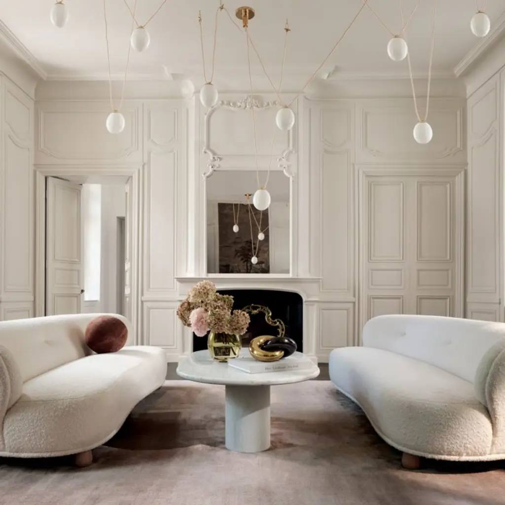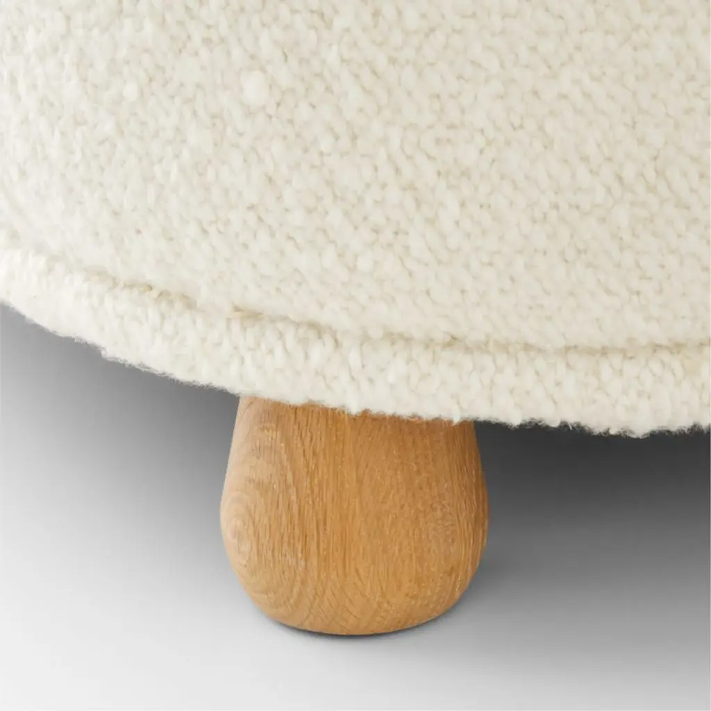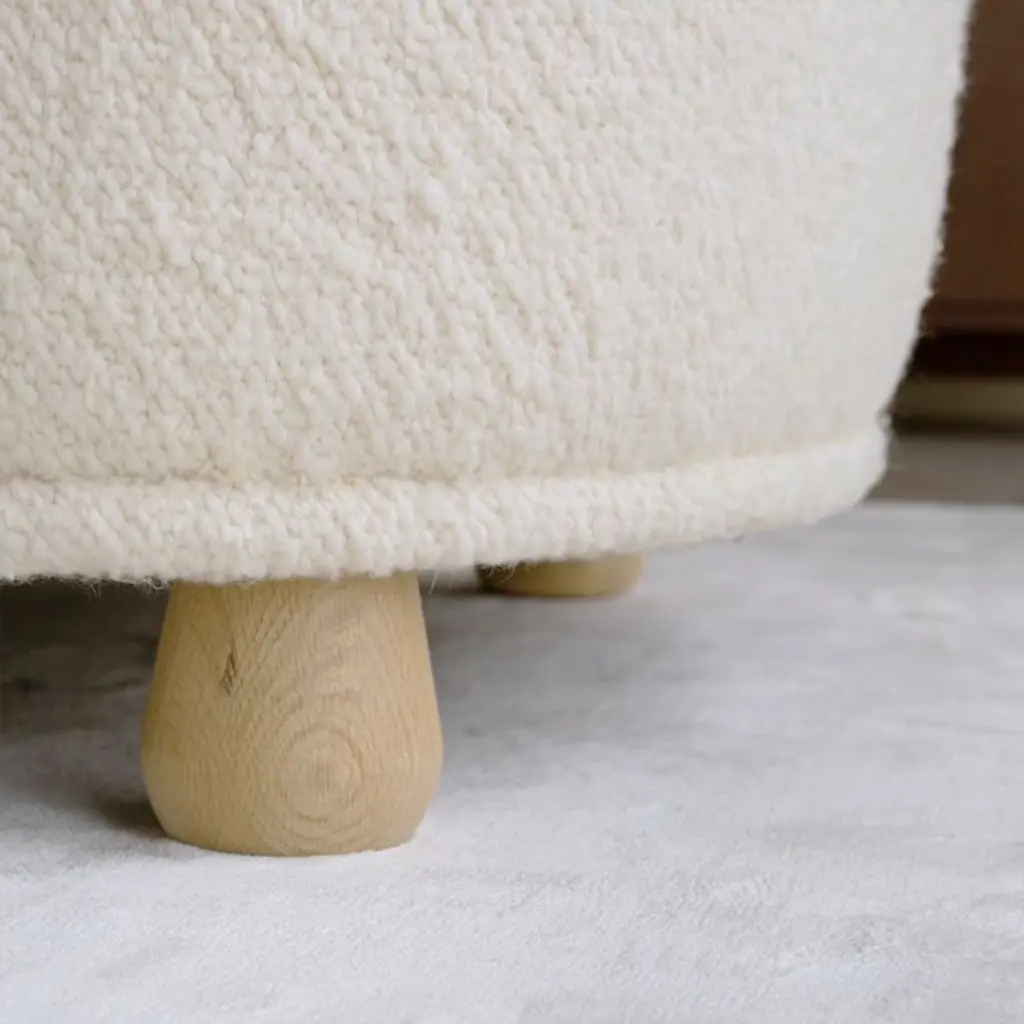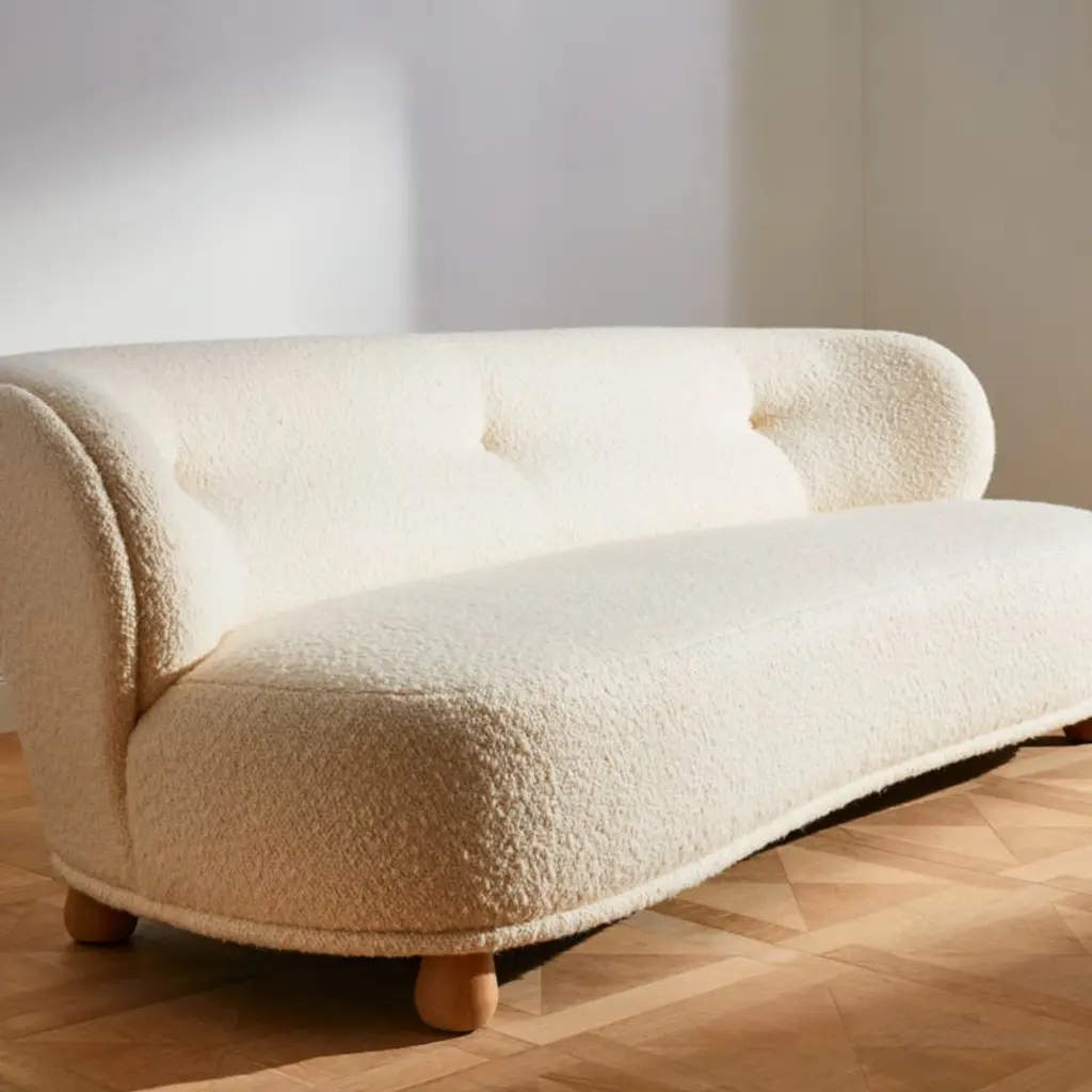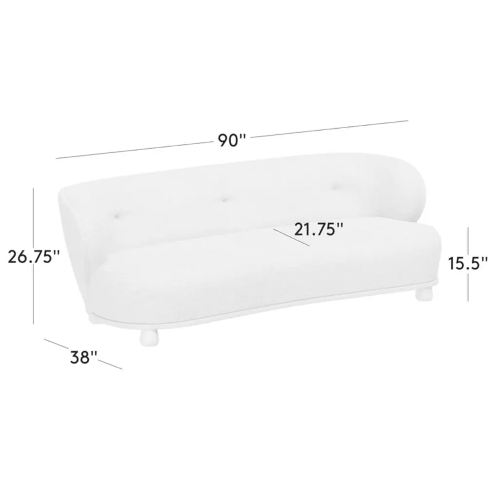 Generously cushioned to hug you as you sit, the Leonne long settee by goop features soft curves of custom wool-blend boucle for a grand statement on a small scale. The sweeping curved back, tufted buttons and teardrop-shaped American white oak legs certified sustainable by the Forest Stewardship Council (FSC) come together for a piece that is elevated and timeless. Designed for small spaces, the sophisticated settee is also perfect for creating intimate seating in larger rooms. CB2 exclusive.